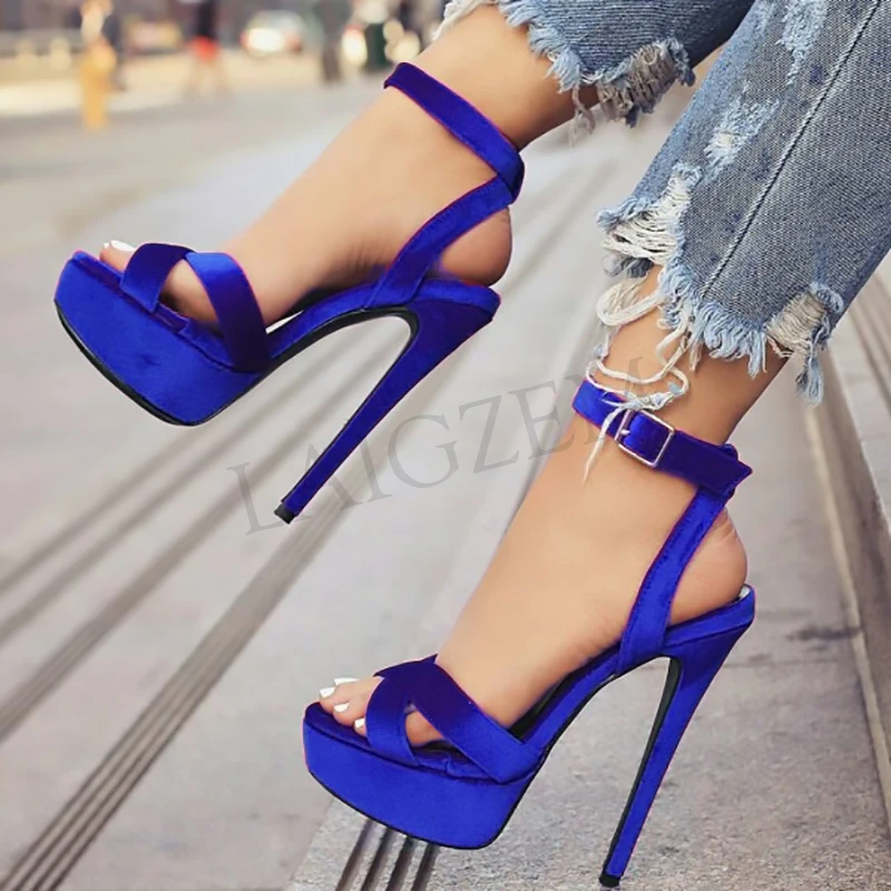 LAIGZEM/женские сандалии на каблуках-шпильках; Бархатные Босоножки на платформе и каблуке; Летние туфли; Женская обувь; Большие размеры 48, 50, 52
