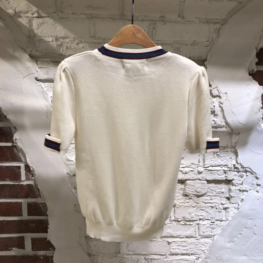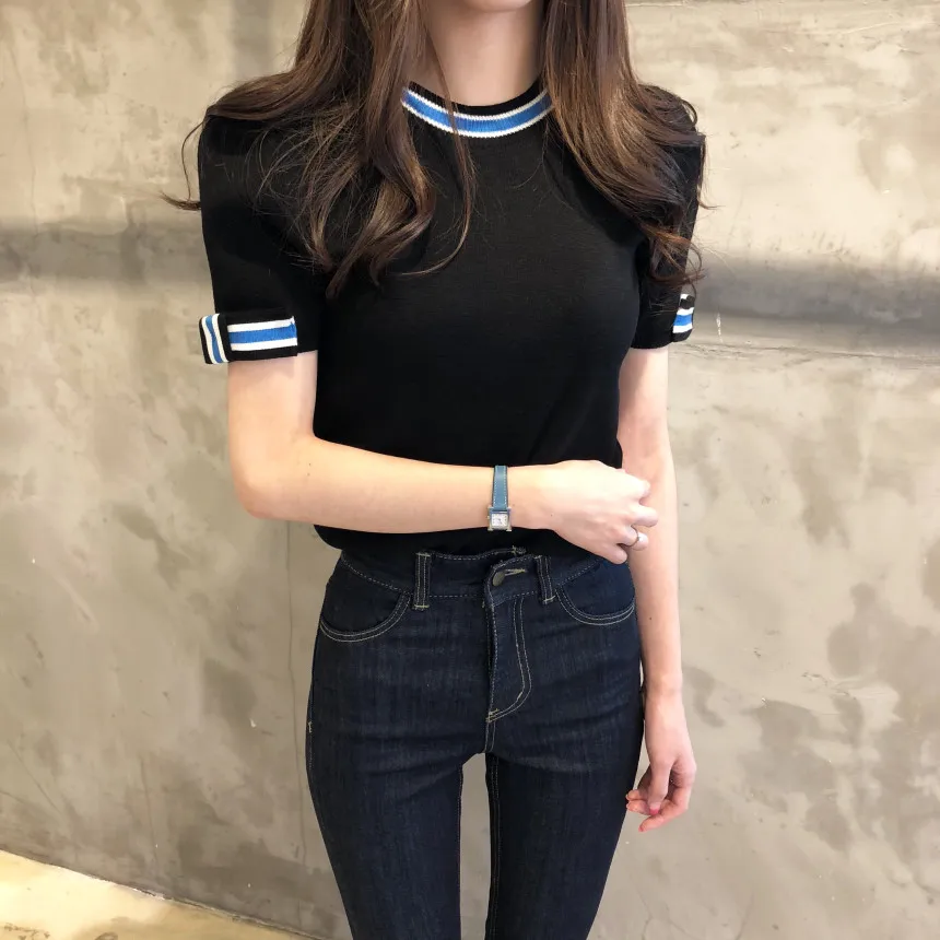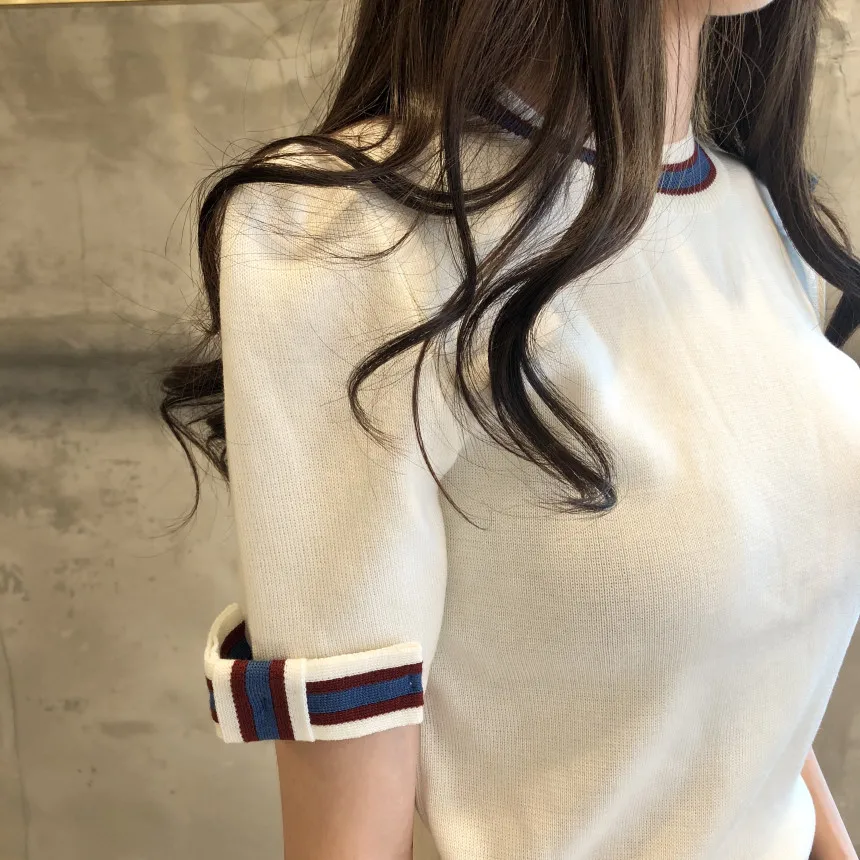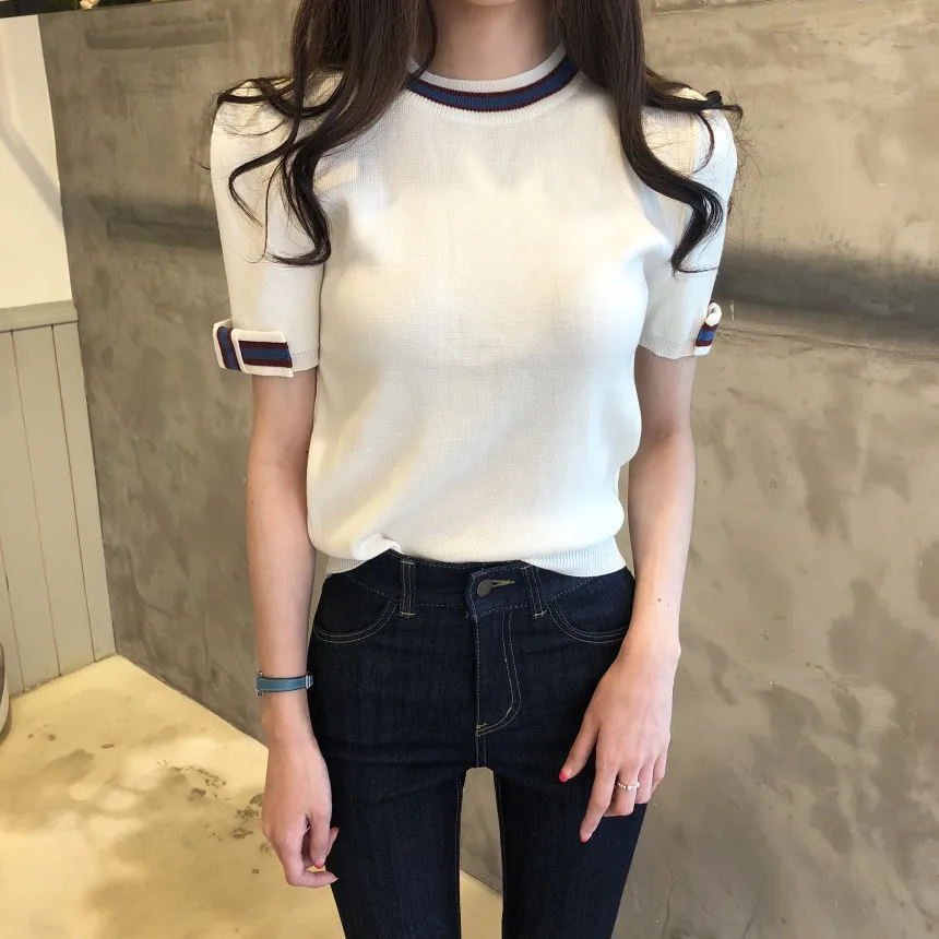 Женский трикотажный свитер с коротким рукавом, винтажный офисный пуловер с круглым вырезом в Корейском стиле, весна-лето 2021