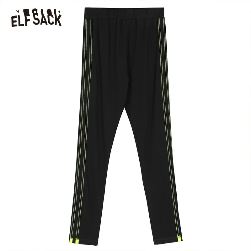 ELFSACK, черные, одноцветные, с эластичной талией, обтягивающие штаны для женщин, 2020, зимние, новые, в полоску, цветные, офисные, женские, базовые, штаны для ежедневной носки