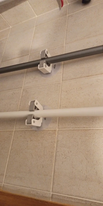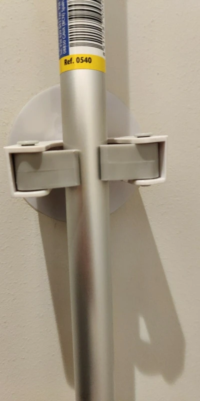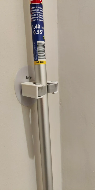 Выглядит хлипко, но работает, на сколько хватит посмотрим, из плюсов швабру хоть и лёгкую но держит на весу, тоесть не просто не даёт упасть прислоненную к стене, а именно держит, в общем прикольная штука рекомендую к покупке если вам тоже надоела постоянно хрен знает как притолоченная к стене швабра которая постоянно намеревается соскользнуть и с грохотом упасть на пол захватив с собой и ведро
