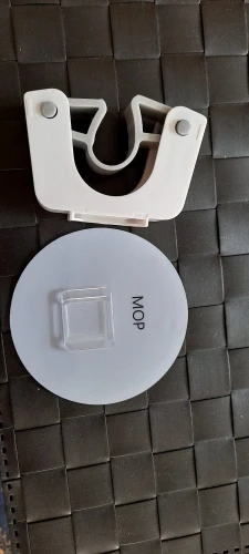 Поддерживающий диск больше, чем я думал. Я также был удивлен, увидев, что есть прозрачный зажим, чтобы держать фактический зажим для швабры. Но я не буду использовать его, прилипающий к стене, так что это не важно для меня. Я проверил, как он держит метлы, и он делает их прочно. Извините за кота на фотографиях, но ему было интересно, и он Фотобарабан.