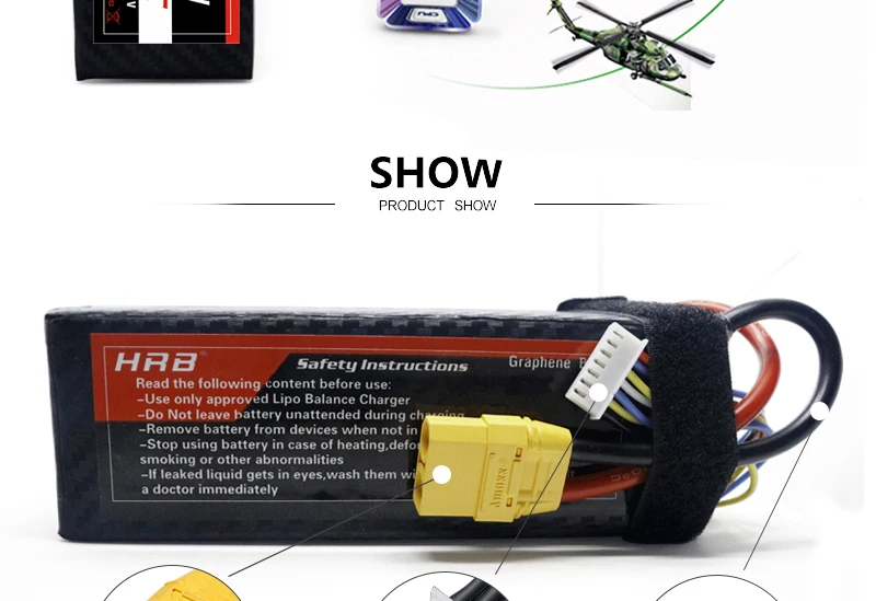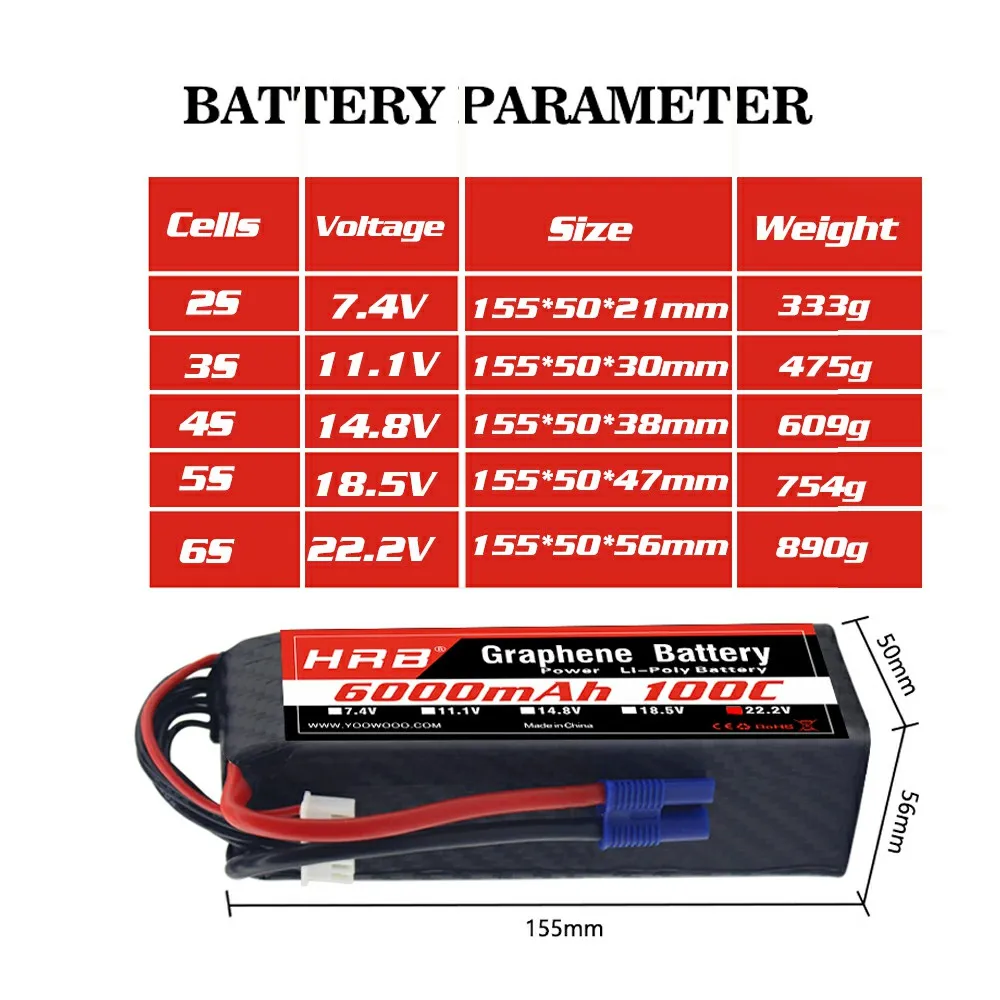 HRB 4S 6000m Графеновый аккумулятор 11,1 V 14,8 V 22,2 V 6000mah Lipo 100C XT60 разъем для traxxass RC автомобиль Лодка вертолет 450XL 700E