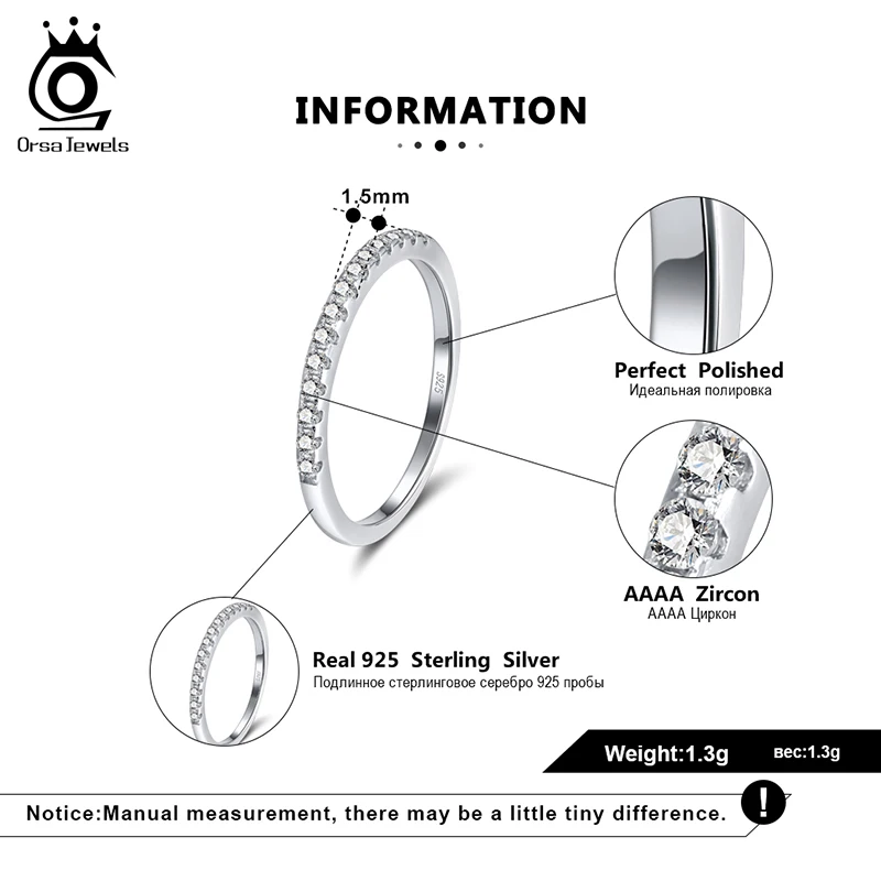 ORSA JEWELS классический палец кольцо Настоящее 925 стерлингового серебра с AAA циркон кольцо для женщин ювелирные изделия свадебный подарок OSR204
