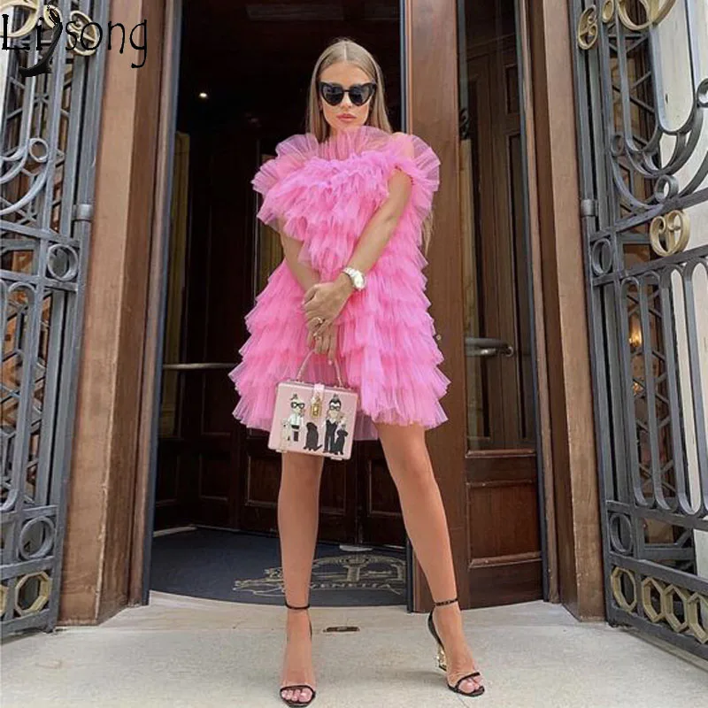 Милое Многоярусное Тюлевое короткое платье с открытыми плечами, платья для выпускного вечера, Коктейльные мини-платья с короткими рукавами, платье для особых случаев, размера плюс