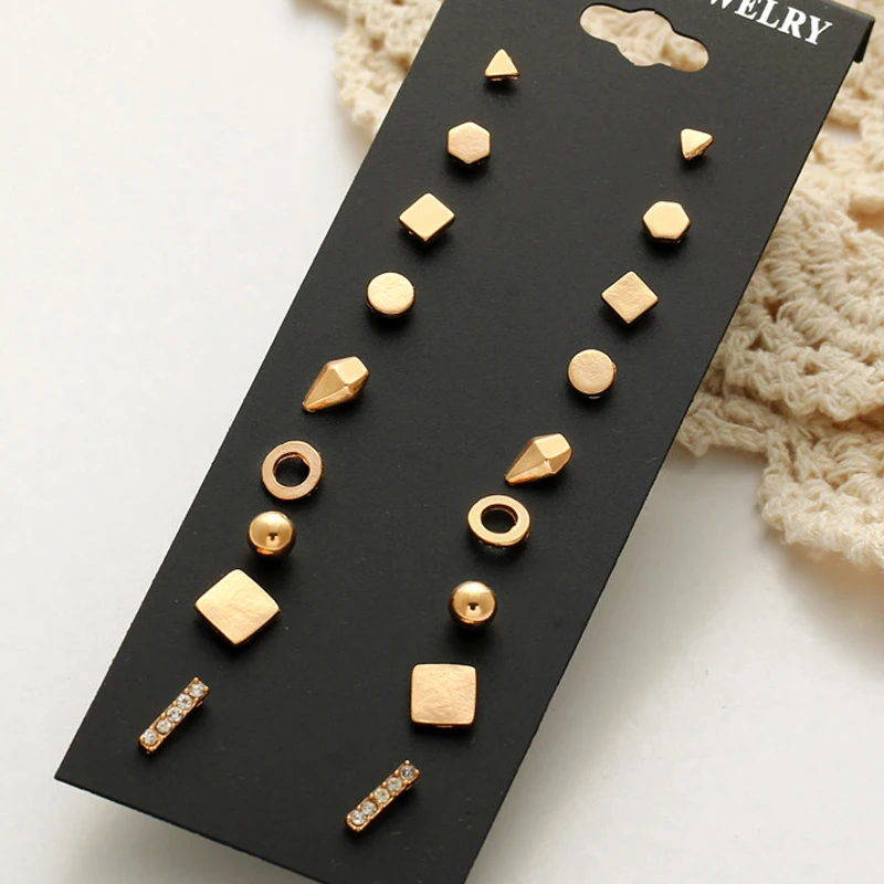 Серьги-гвоздики геометрической формы женские, простые маленькие смешанные треугольные квадратные серьги с подвесками