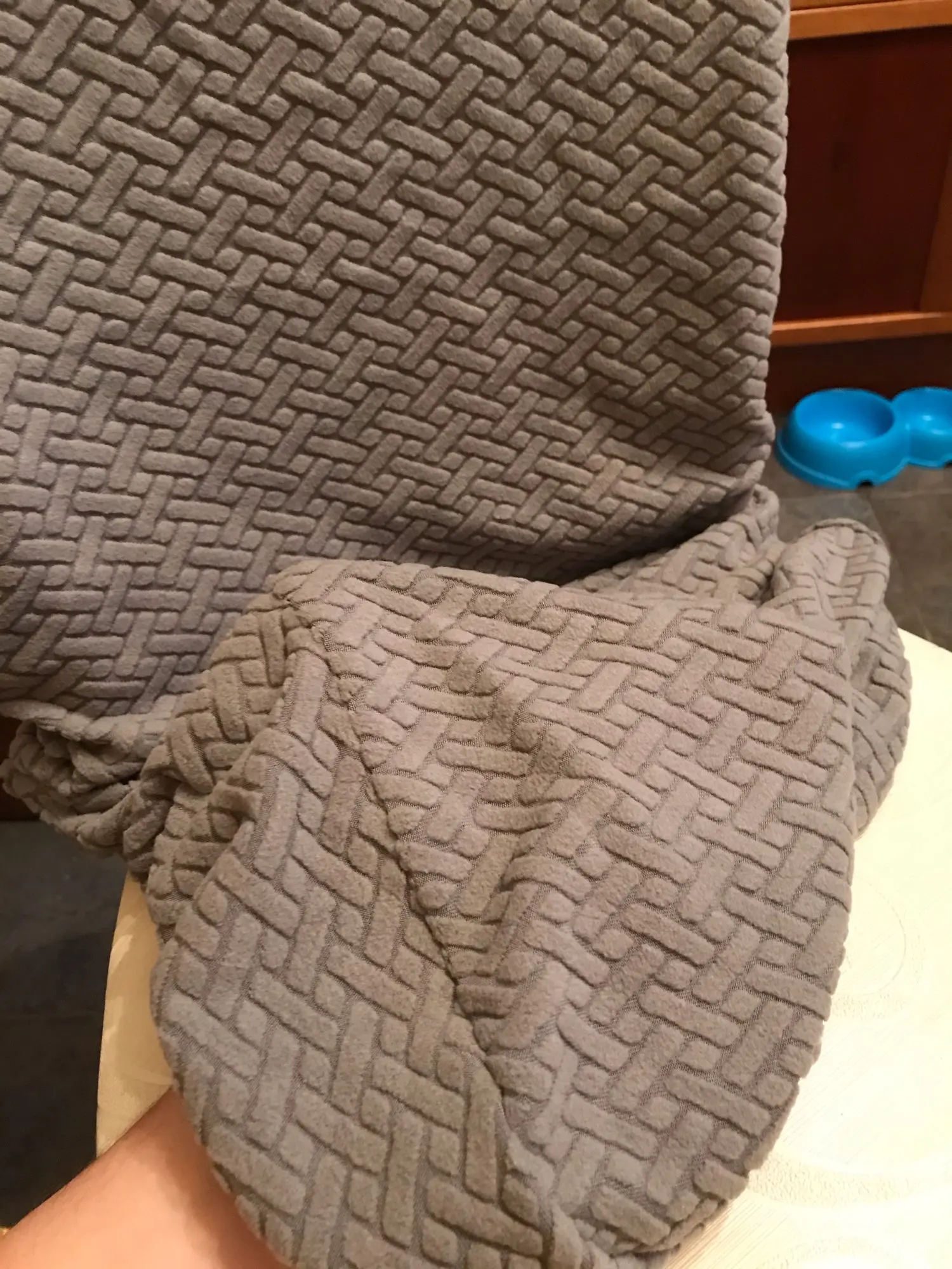 Посылка пришла за 3 недели в Псков. Всё так как в описании. Очень удобная вещь, так как в доме живет кошка, то чехлы меняю регулярно. Чехлы велюровые, не толстые. Покупкой довольна.