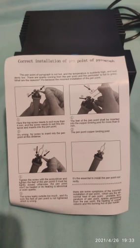 товар пришёл быстро. всё как в описании. к при долгой работе там где держат пальцы нагревается. я помню своё счастливое Советское детство когда был выжигатель тоже самое было с выжигателем. вещь классная.