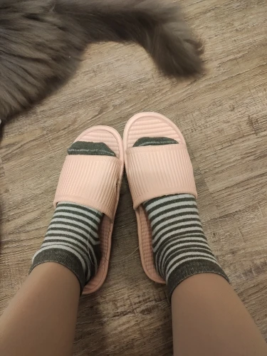 Отличные тапки. Лёгкие, ходить в них комфортно, на ноге практически не ощущаются. Взяла на размер больше, чтобы носить зимой с носками. Я дома всегда в тапках хожу. Давно перешла на такие тапки, т.к легко моются и быстро сохнут нежели тканные. Размер выбирайте по стопе в см по таблице. У меня российский 38, в см где-то 24,3. По таблице любую обувь на Али беру 245см и ни разу не ошиблась. Иногда выбираю 250 в пользу толстого носка если зимой.