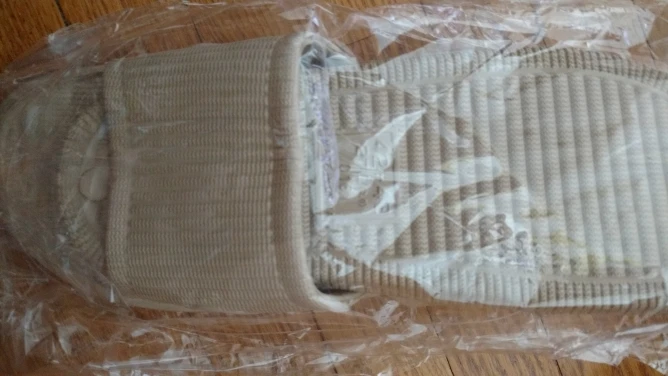 Пришел быстро. Цена соответствует качеству, тапочки в течение первых нескольких дней погружены в резину. После этого запах исчезнет. Посмотрите, как они держатся.