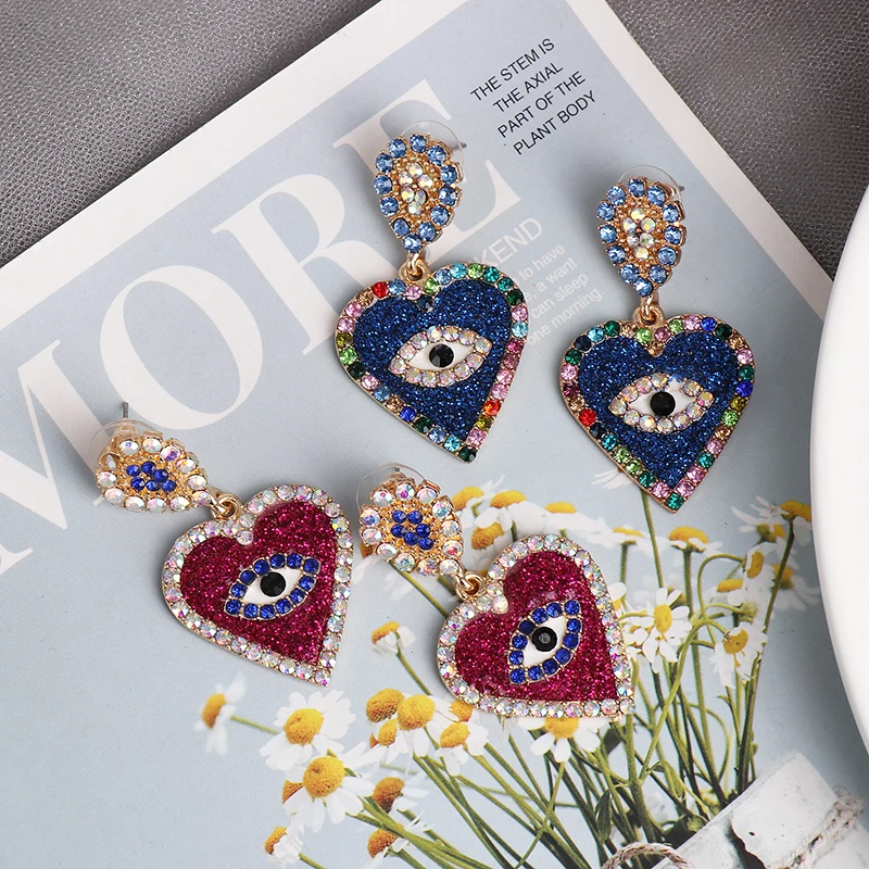 Длинные серьги-подвески FASHIONSNOOPS с синими и фиолетовыми кристаллами для женщин, элегантные свадебные серьги в форме глаза, Модная бижутерия 2020