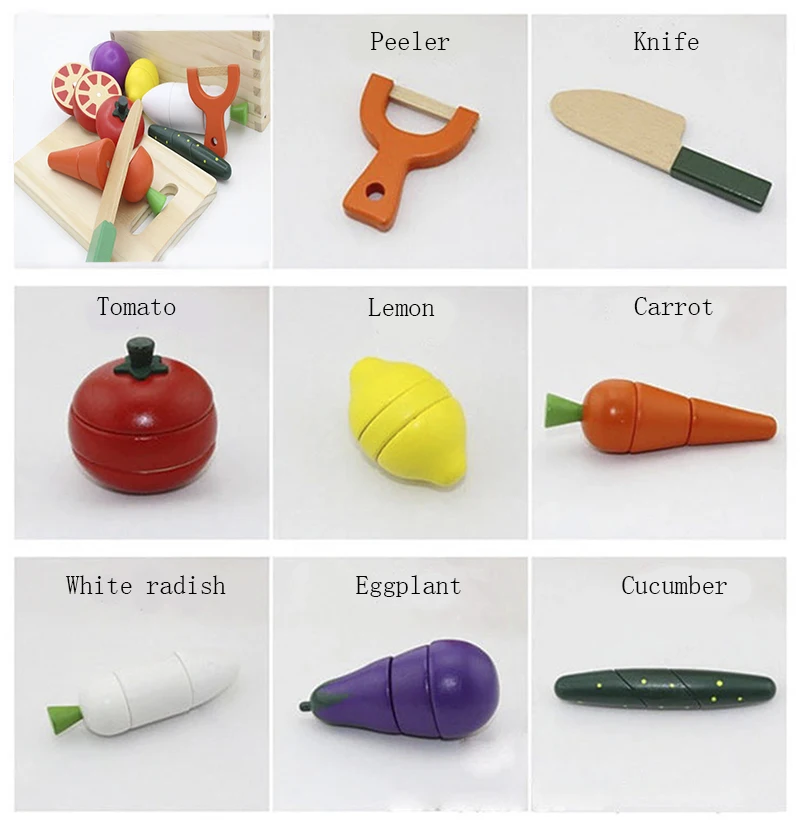 Деревянная игрушка для ролевых игр, Классическая игра, имитация кухонного набора, фрукты, овощи, Монтессори, Ранние развивающие игрушки, игровой дом