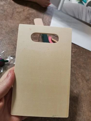 По цене это не плохо, но я ожидал, что это больше. Нож весь в деревянном цвете, ручка не красная, как на фото, а Зеленый Карандаш картофеля ослаблен, возможно, из-за транспортировки.