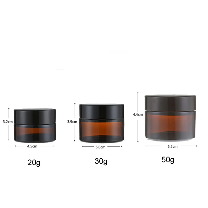 Баночки для косметики из янтарного стекла 5g, 5 шт., 10 г, 1 5g, 20 г, 30 г, 50 г, с белыми внутренними вкладышами и черными крышками, контейнерный горшок для крема