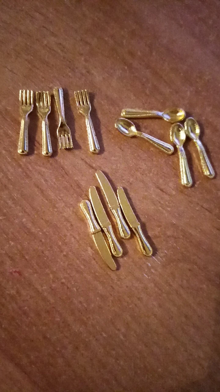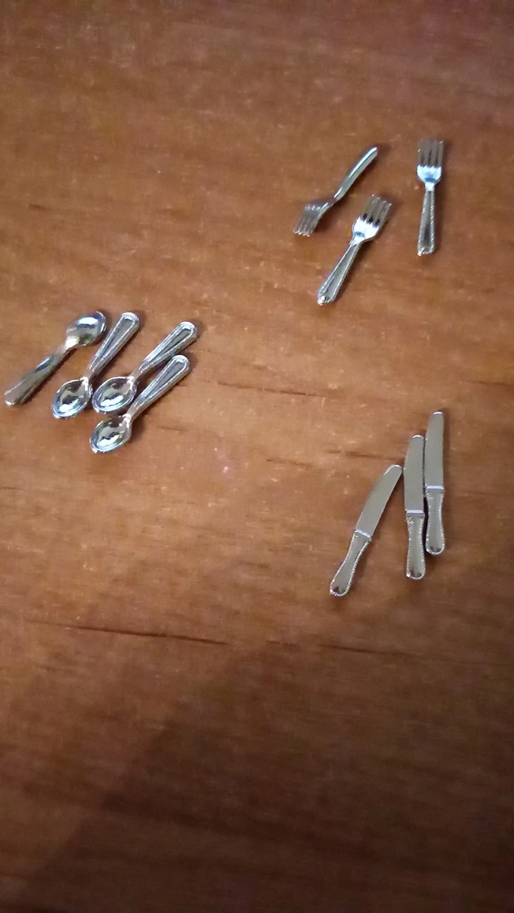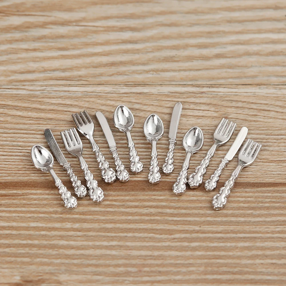 Набор миниатюрных столовых приборов, набор из 12 приборов для кукольного домика, в масштабе 1:12, вилка, нож, ложка, миниатюрная посуда, аксессуары для кукол