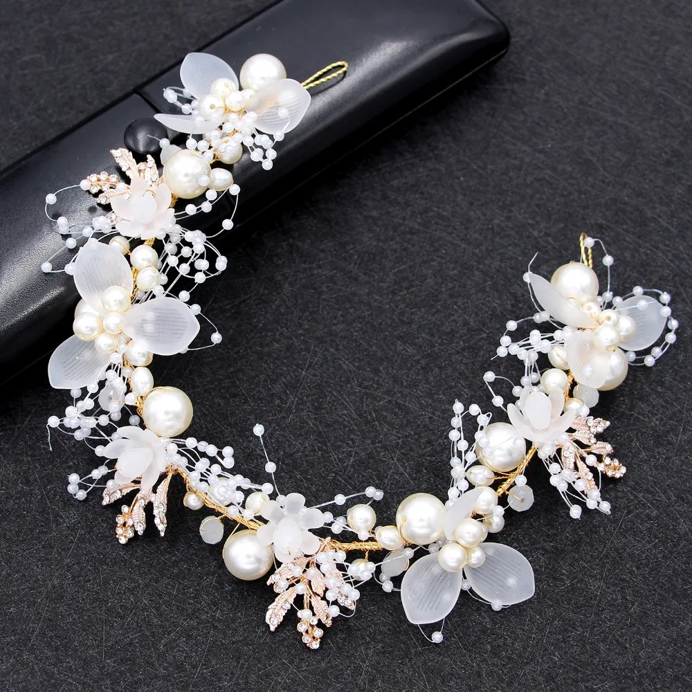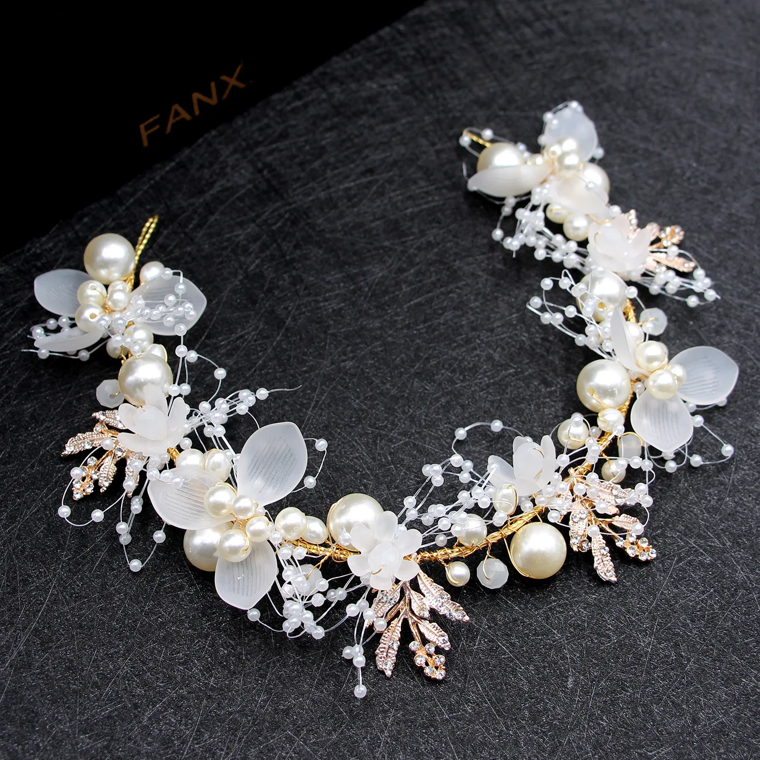 Женский свадебный обруч KMVEXO, обруч ручной работы с белыми цветами и жемчугом