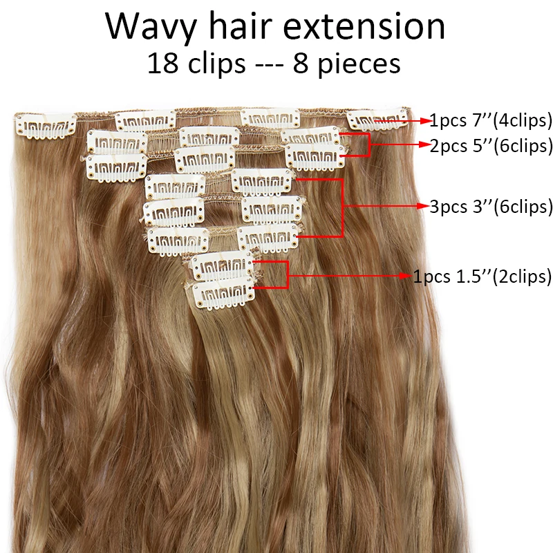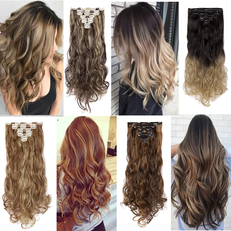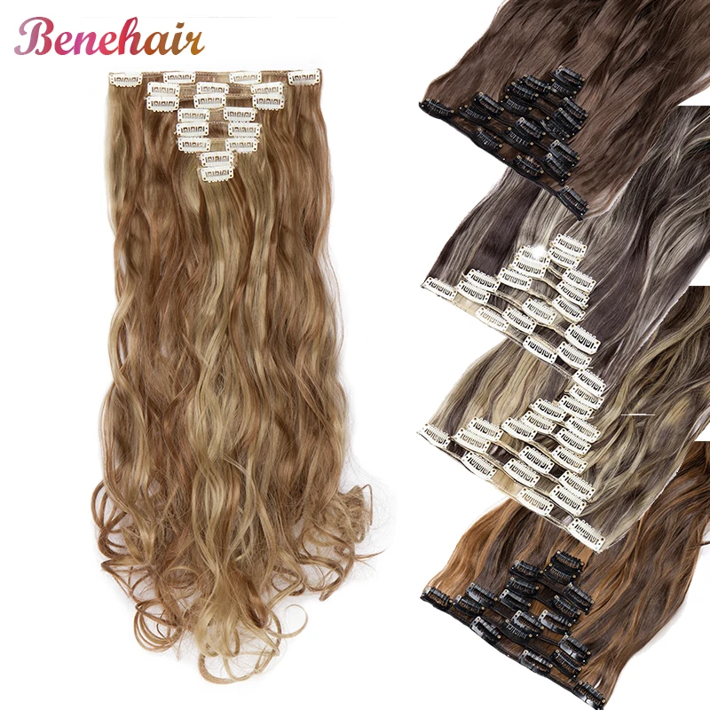 BENEHAIR Зажим для наращивания волос Длинные волнистые волосы для наращивания Синтетические заколки на волосы Зажимы для волос Красный Розовый Синий Фиолетовый Волосы Ложные накладные волосы