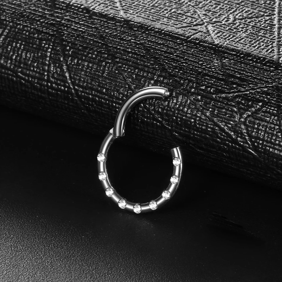Кольцо для носа из титана с драгоценными камнями, перегородка, кликер, пирсинг для пупка, стальной пирсинг носа, серьги-спирали, 1 шт.