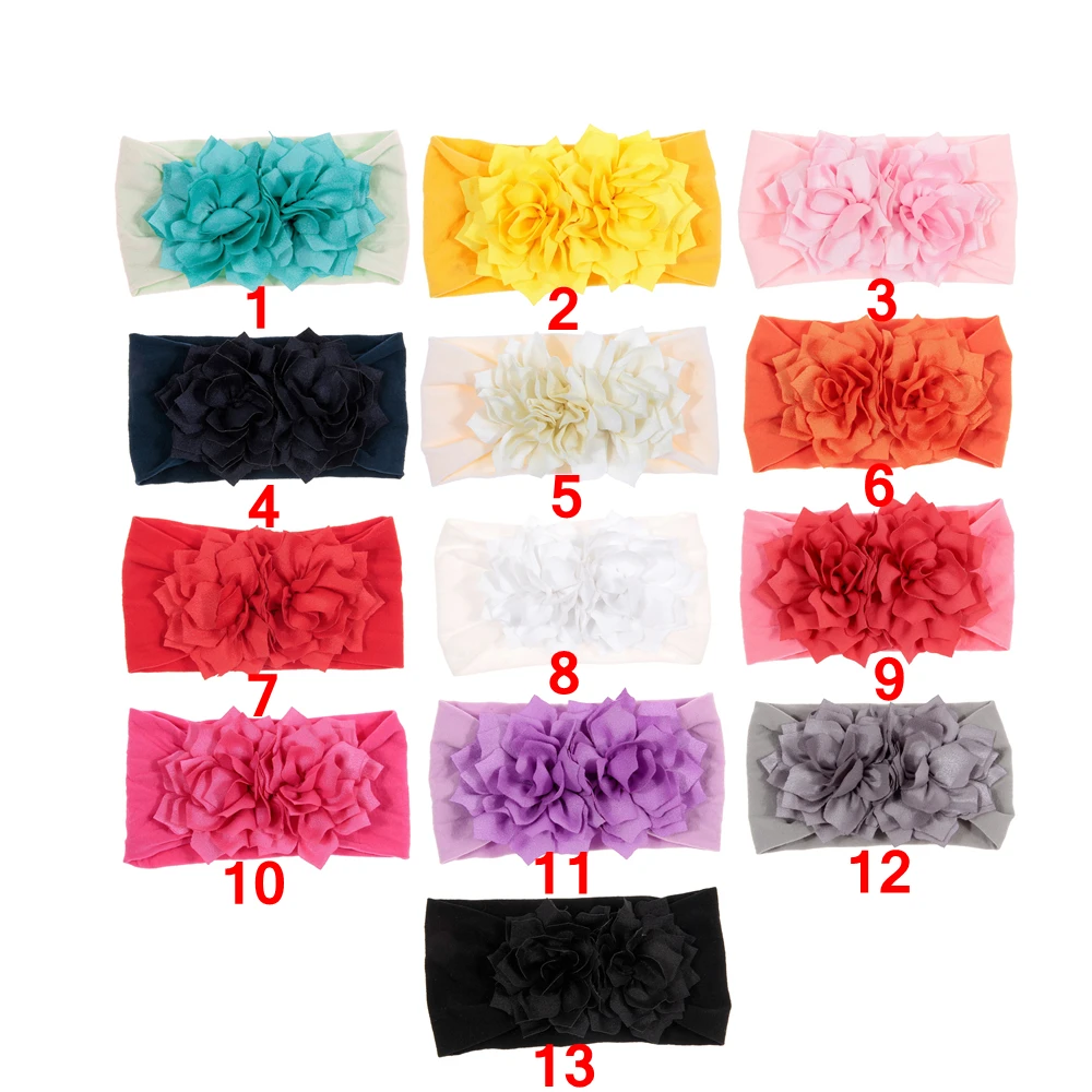 Повязка на голову для девочек, нейлоновая, с цветком лотоса, эластичная, 1 шт., тюрбан для малышей