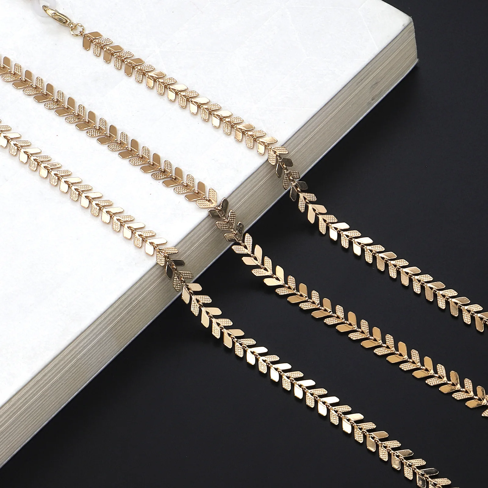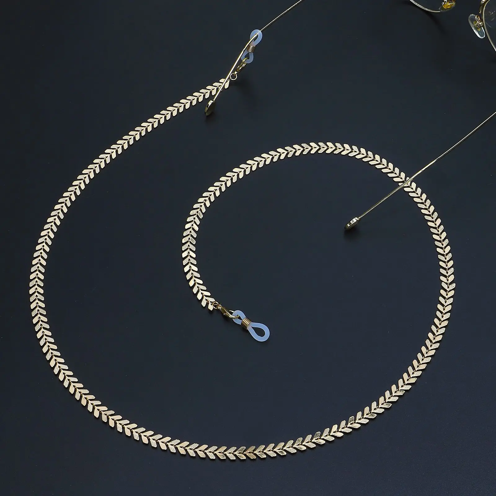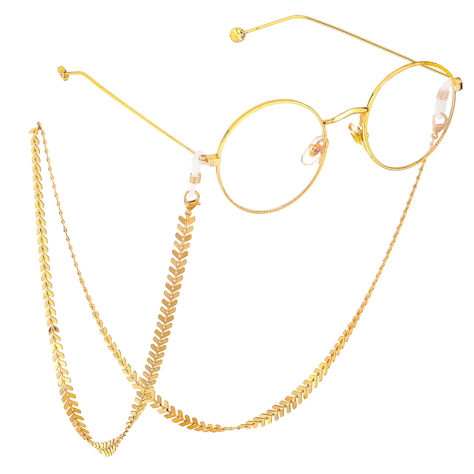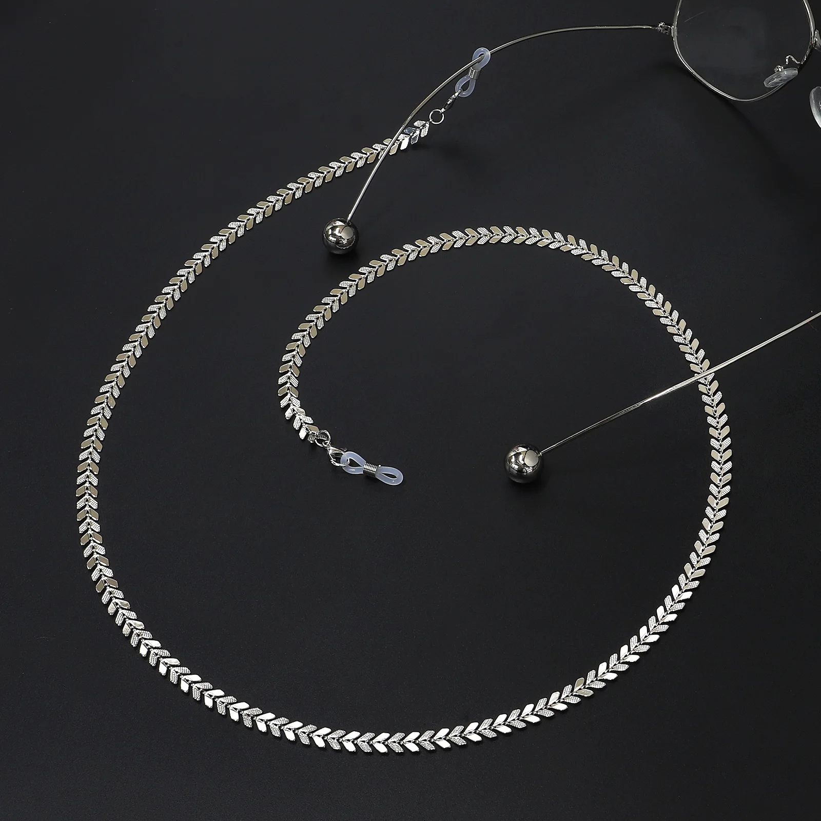 Длинные очки золотого и серебряного цвета, плоская цепочка для очков для мужчин и женщин, очки для чтения в форме рыбьей кости, шейный шнур, противоскользящие искусственные очки