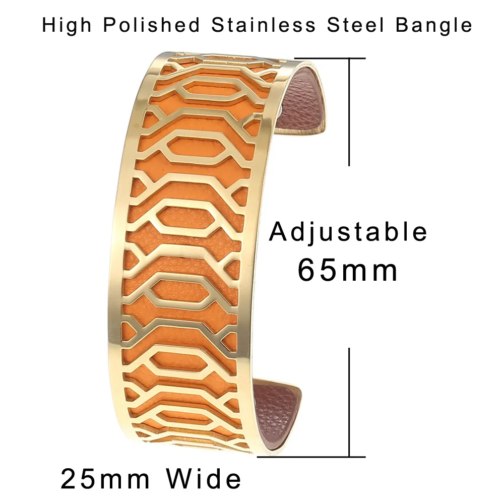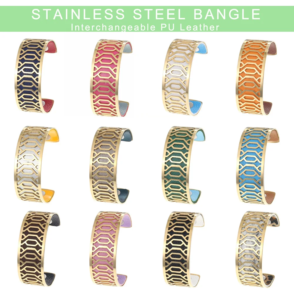 Женский Браслет-манжета из нержавеющей стали, со сменной кожей