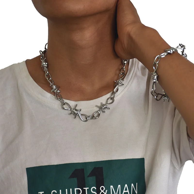 Ожерелье из проволоки, женское ожерелье в стиле панк, ожерелье с колючими звеньями, цепочка-чокер, массивные ожерелья для дискотек и танцев