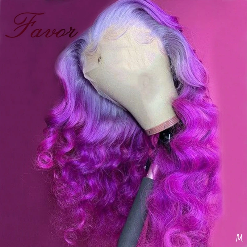 150% бразильский парик из человеческих волос Remy, волнистые серые парики на сетке спереди, розовые фиолетовые парики с эффектом омбре для женщин, прозрачные кружевные предварительно выщипанные