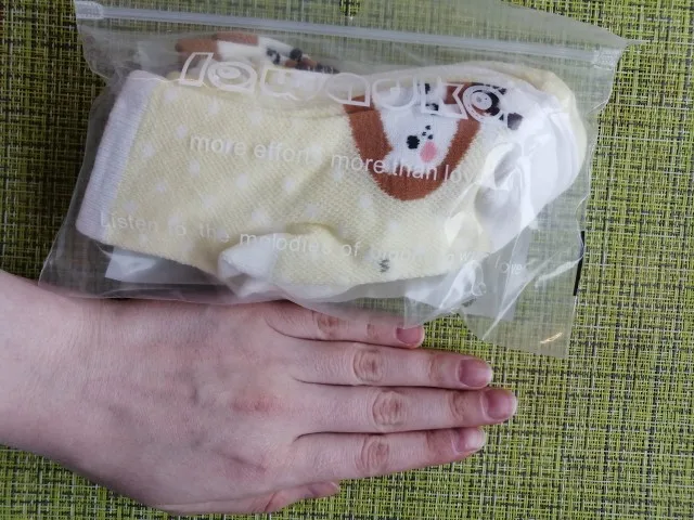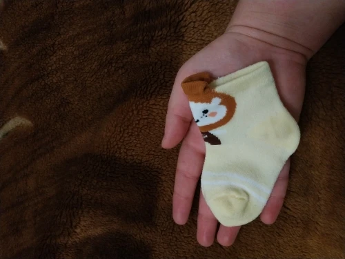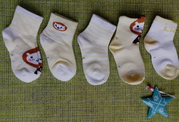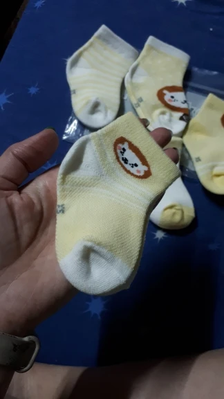 Носочки очень миленькие,цвет приятный,чуть теплее чем на фото продавца,особенно порадовал носочек с лисичкой ,я не вглядевшись заказала и не видела ,что он с ушками))но немного расстроили кучи ниток изнутри и то,как быстро растянулся носочек,я просто на ладошку натянула,а он уже стал больше чем новый. Это наверное после стирки поправится,но что-то мне подсказывает что они на пару раз,но за такую цену конечно 5 баллов. Шла кстати посылка меньше месяца,упакована была в почтовый пакет и с зип пакетик продавца