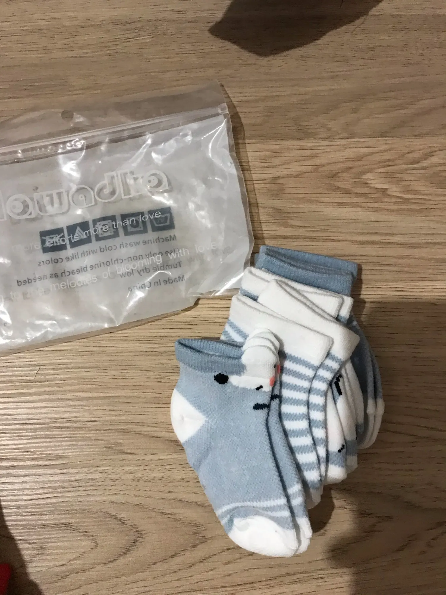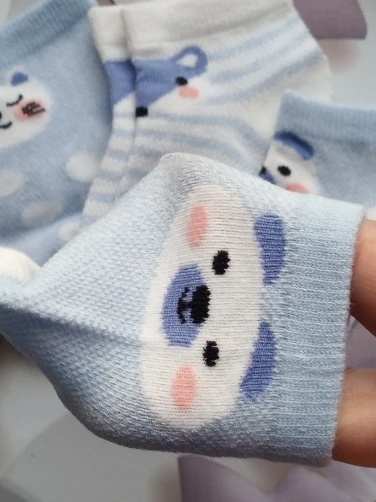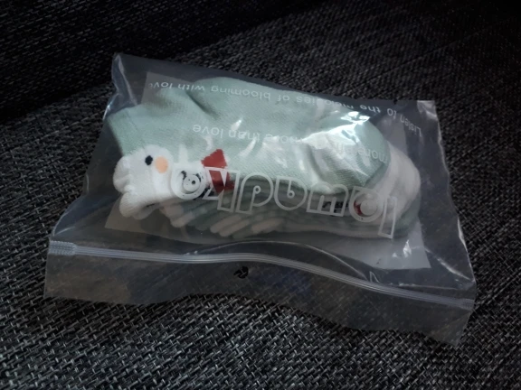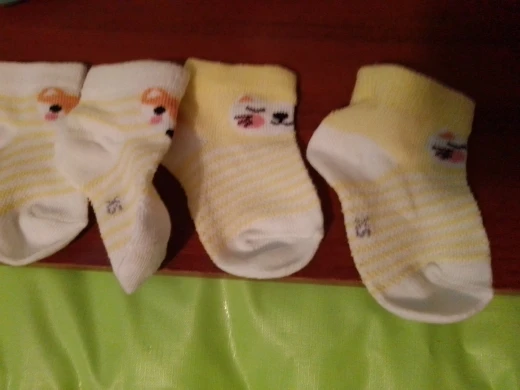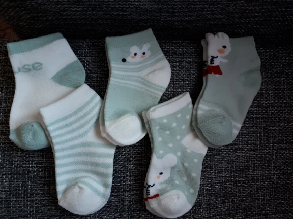 Брала подобные для старшего, когда был новорожденный и оказалось они единственные не падают с ноги и держатся и ещё и одежду держат, ползуны и комбинезоны в области ног вечно путающиеся... Зимой их носили под комбинезон для дополнительного слоя, и в общем до года прям, брала размер для новорожденных, xs. 5 пар на год хватило на все случаи жизни, но и заносились, пошли катышки, вид потеряли, но одни даже и второму ребенку одеть не стыдно... Продавец хоть и другой, качество вроде такое же, так что прилагаю фотки, это которые светло-зеленые. От неправильной стирки мышки поплыли, но просто покрасились в розовый, так я их замачивала... а так вот решила такие же взять, но уже 3м для младшего, пока не родился. Носки больше, а маркировка размера на них та же xs. По качеству вроде такие же, тонкие, для лета или малышу под низ или наверх одежды одевать - толще и не надо. До Москвы 3 недели где-то, отслеживались