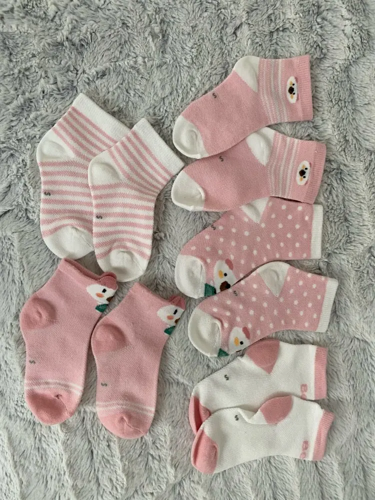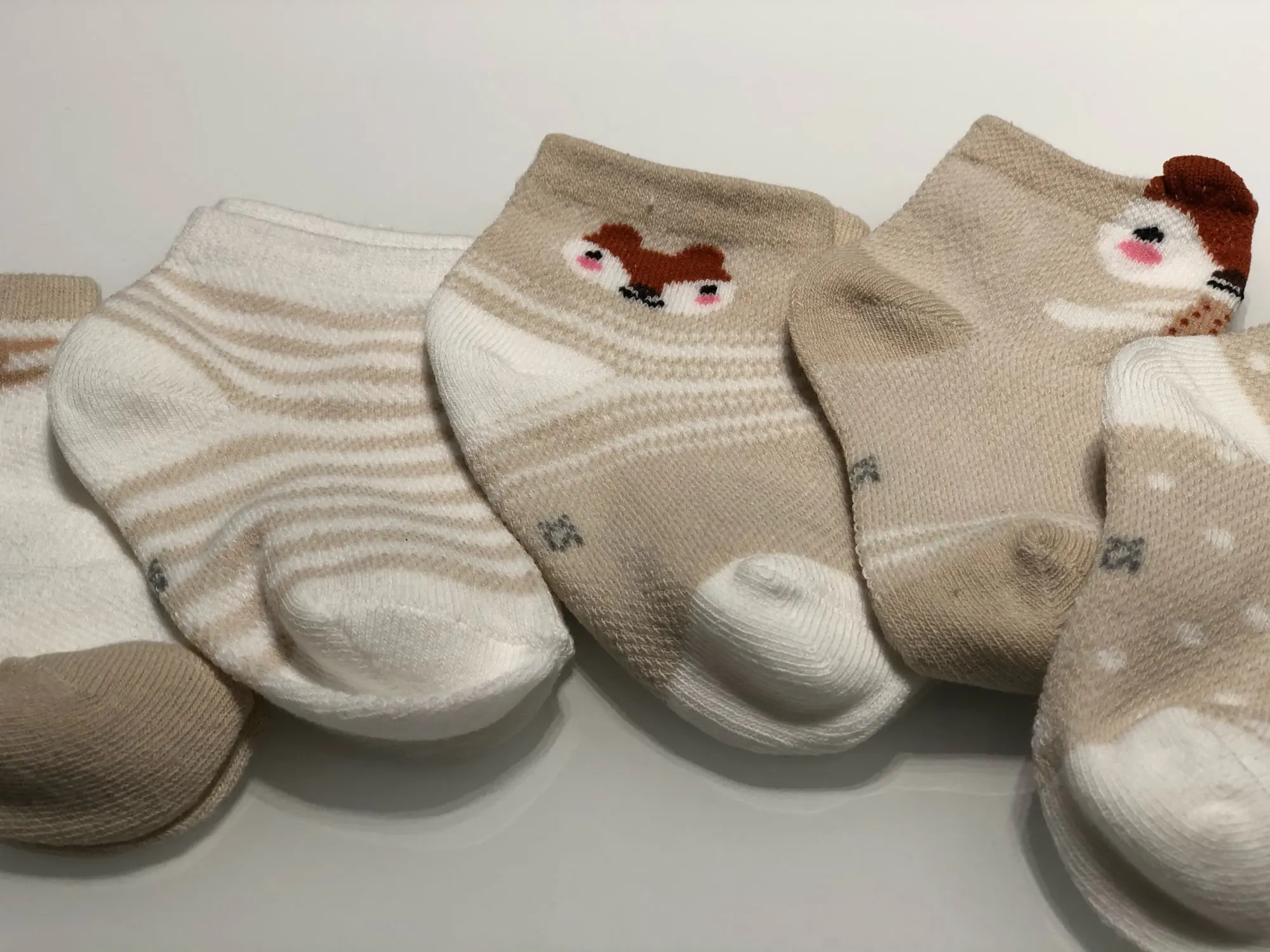 Милейший набор носочков! Товар соответствует описанию. В комплекте 5 штук. Носочки мягенькие, хорошо тянутся, резинка не тугая. Приятная нейтральная расцветка. Размер вышит на носочках. У меня - XS. Носочки были упакованы в зип-пакет. Доставка быстрая. Брала с хорошей скидкой. Рекомендую продавца и товар!