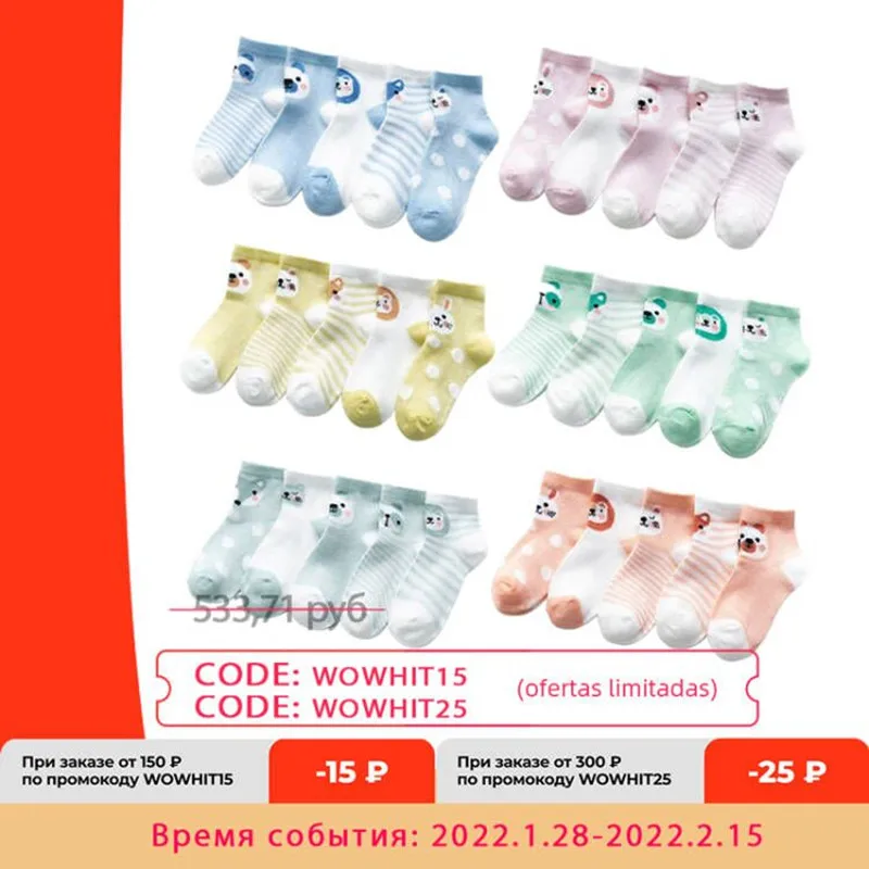 Носки хлопковые сетчатые, тонкие, для новорожденных, 5 парЛот