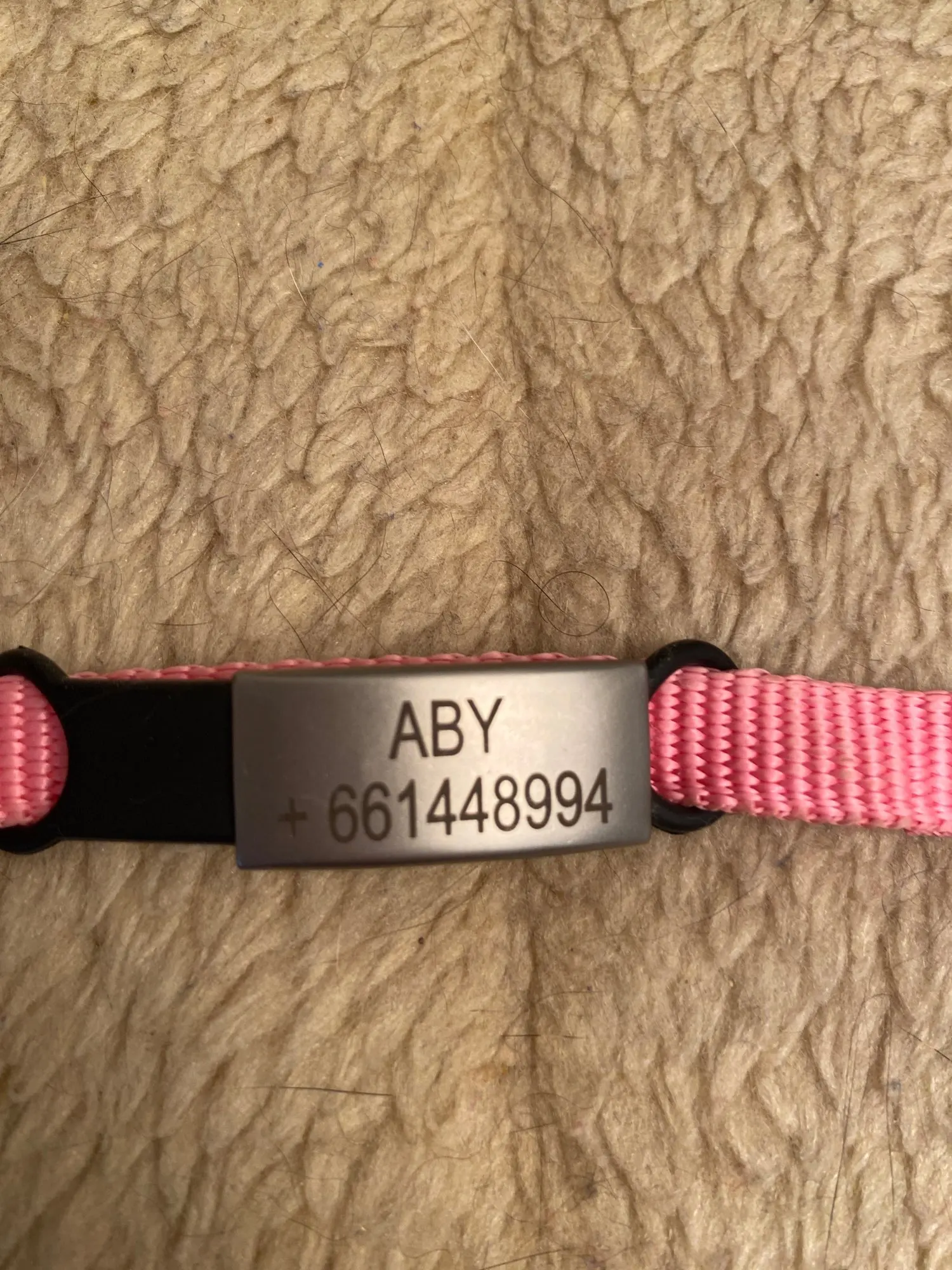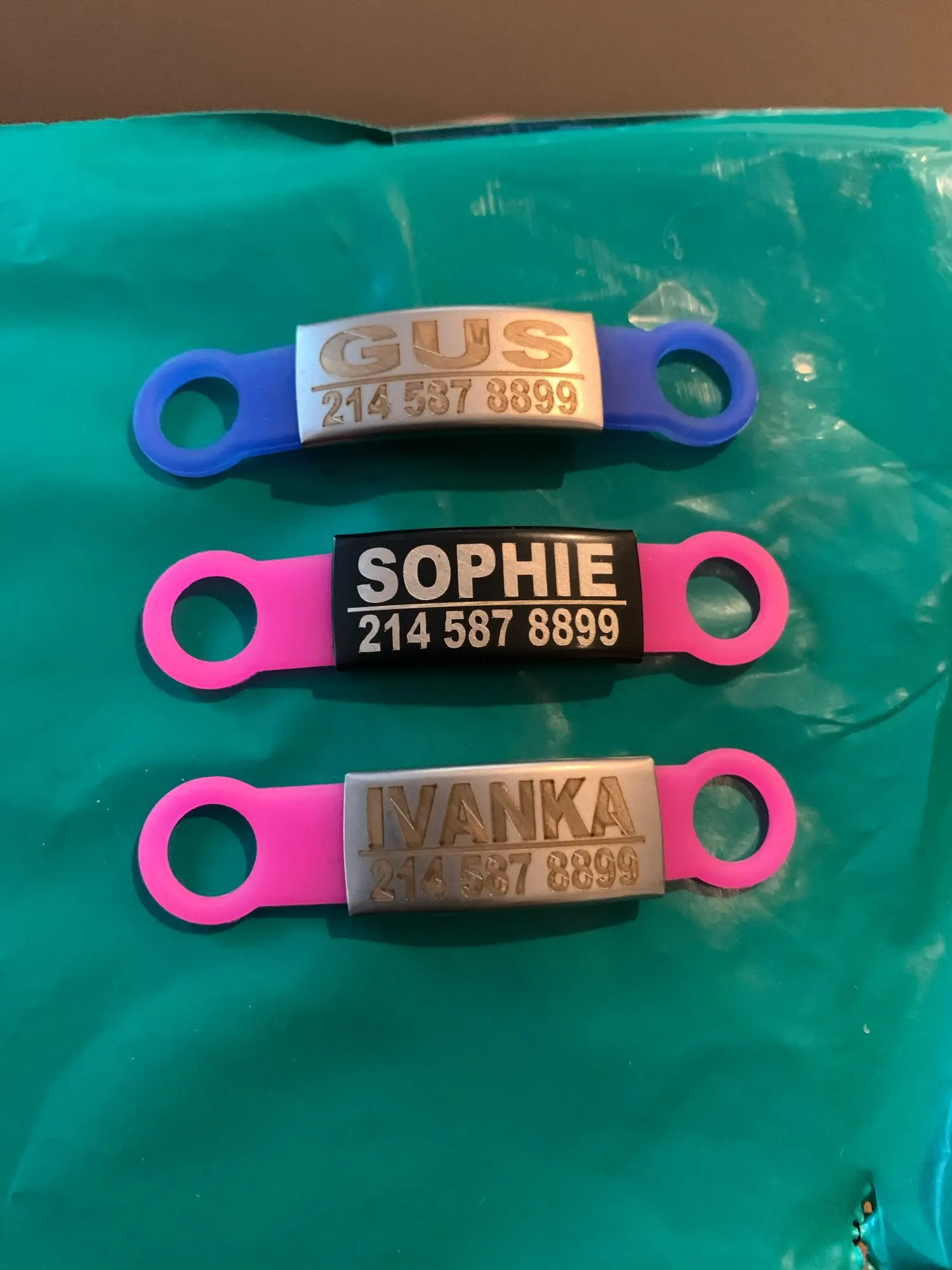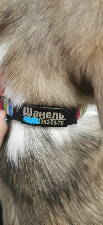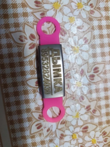 Метка хорошая. Надпись четкая, правильная. Спасибо исполнителю и продавцу. Одно смущает: слишком мал диаметр прорези для ошейника-8 мм.Правда, силикон хорошо растягивается. В крайнем случае, если не наденется на ошейник, можно пришить к нему.