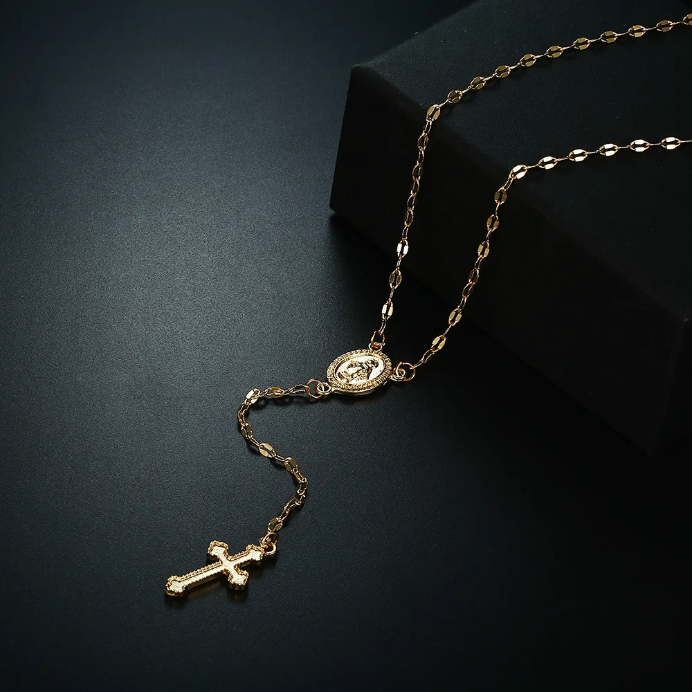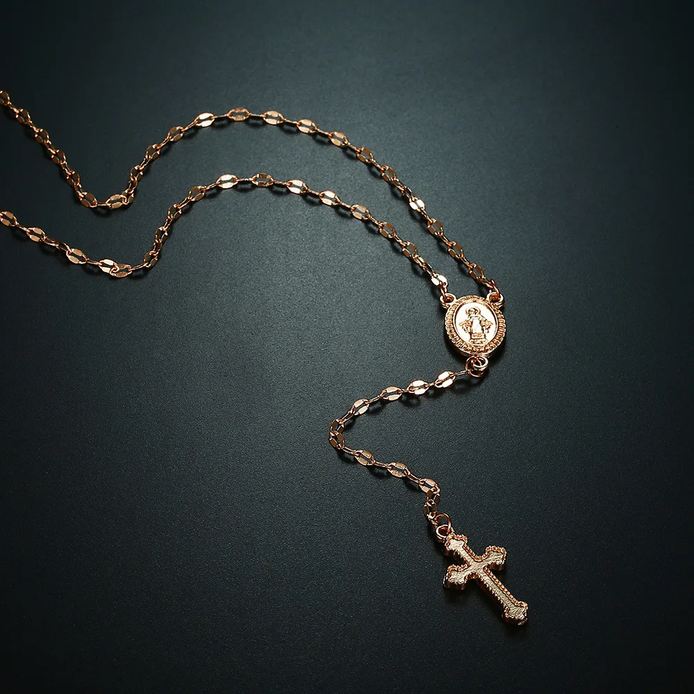 Элегантный Девы Марии крест подвески и ожерелья для женщин розового золота Цвет церкви колье с кулоном с религиозной символикой, ювелирные изделия для девушек, Q-176