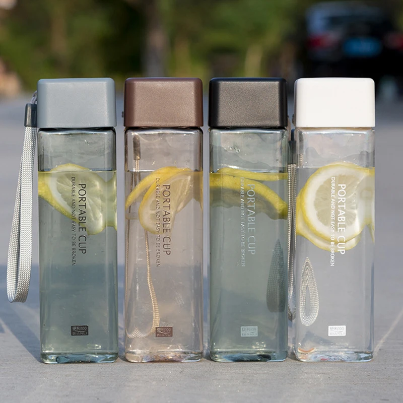 Квадратная пластиковая бутылка для воды, чая, молока, фруктов, портативная, герметичная, 500 мл