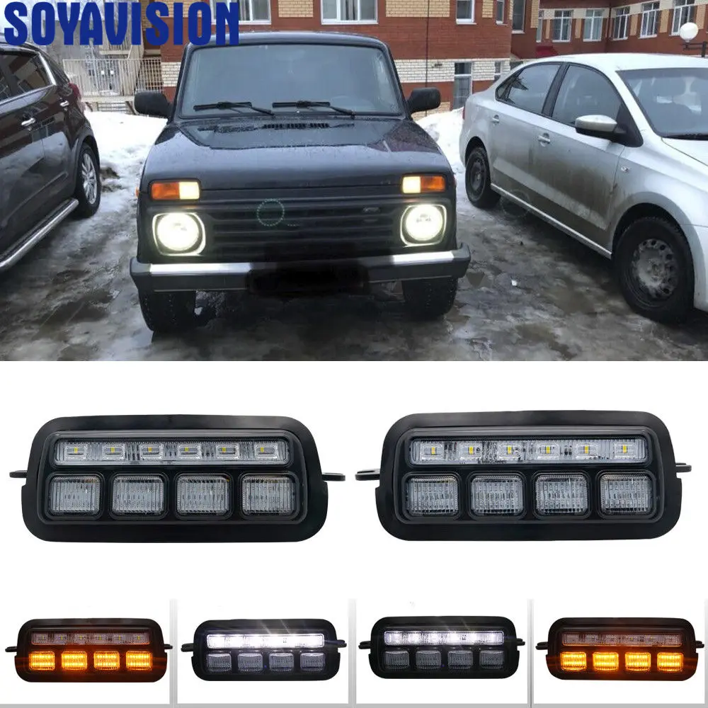 Светодиодный фонарь DRL, лампы для поворотного сигнала для Lada Niv...