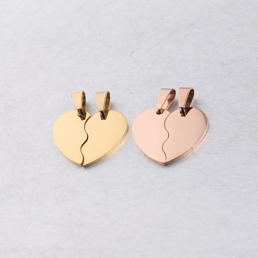 Золото/розовое золото пустые пазлы из нержавеющей стали кулон сердце для гравировки металла разбитое сердце бирка зеркальная полировка оптовая продажа 10 пар