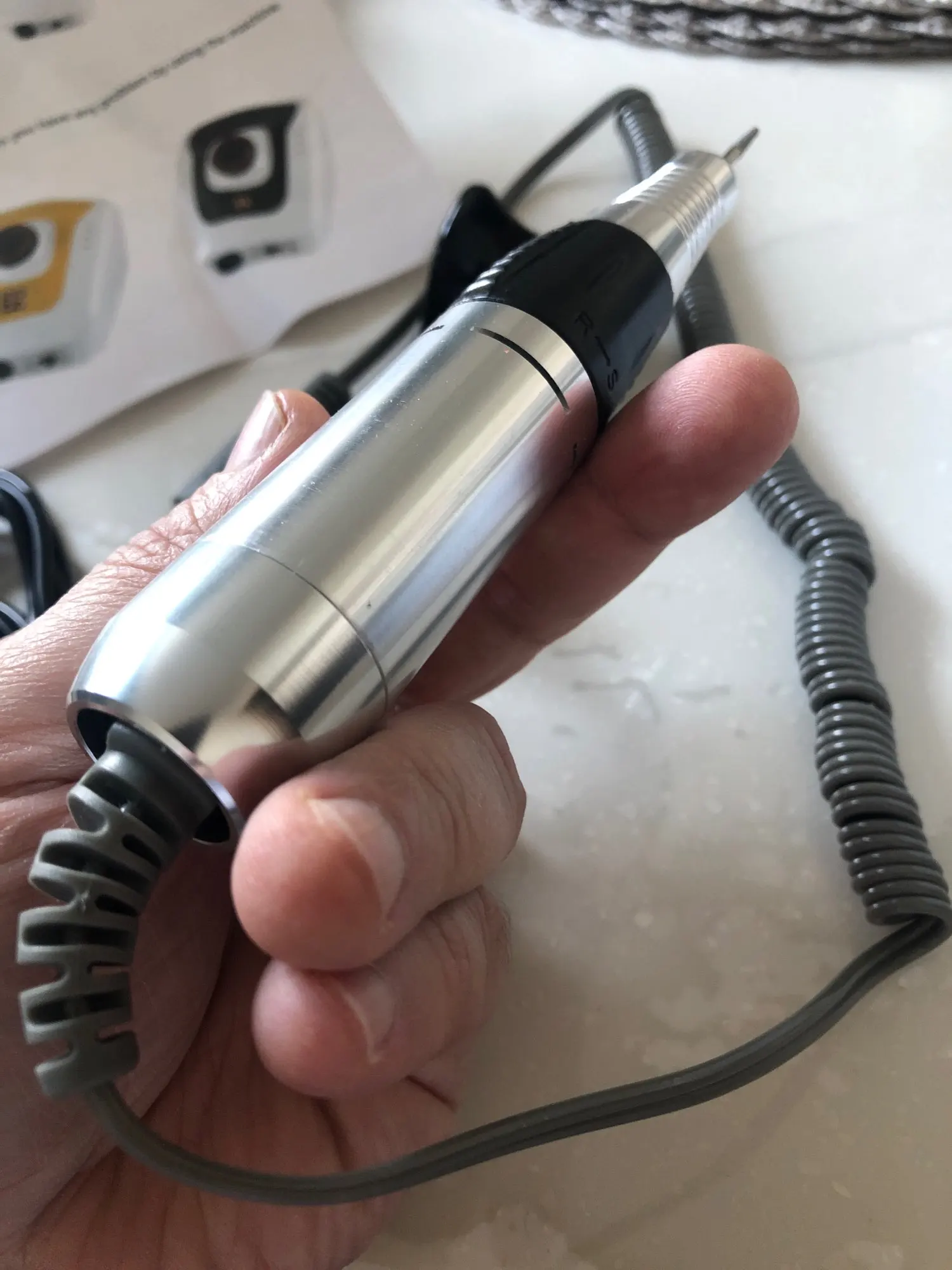 ну что сказать . машинка клёвая. ну для меня . т.к я делаю сама себе маникюр, как умею, для меня такая машинка супер. заказывала 26.12 , пришло 30.12 до Архангельска