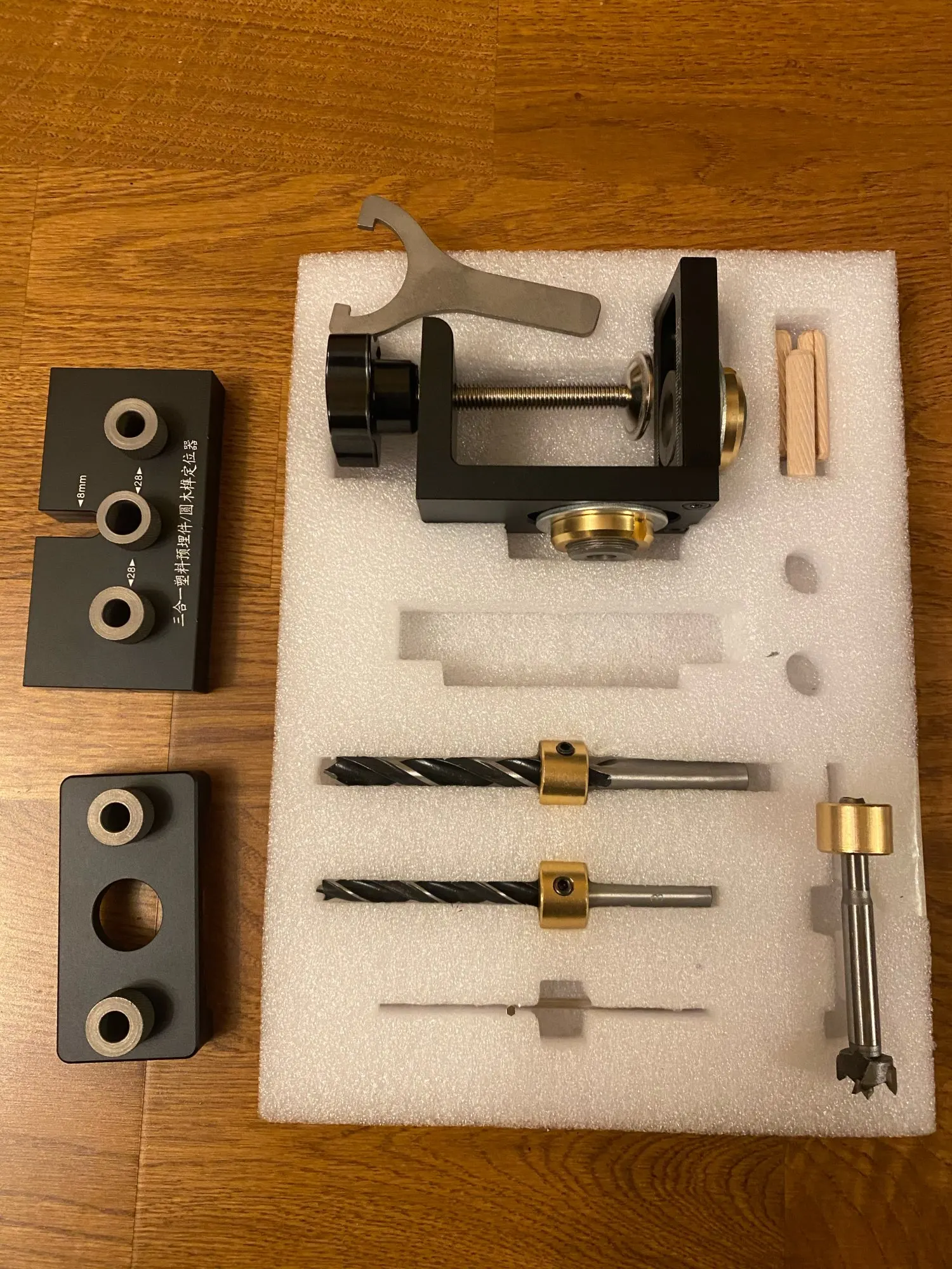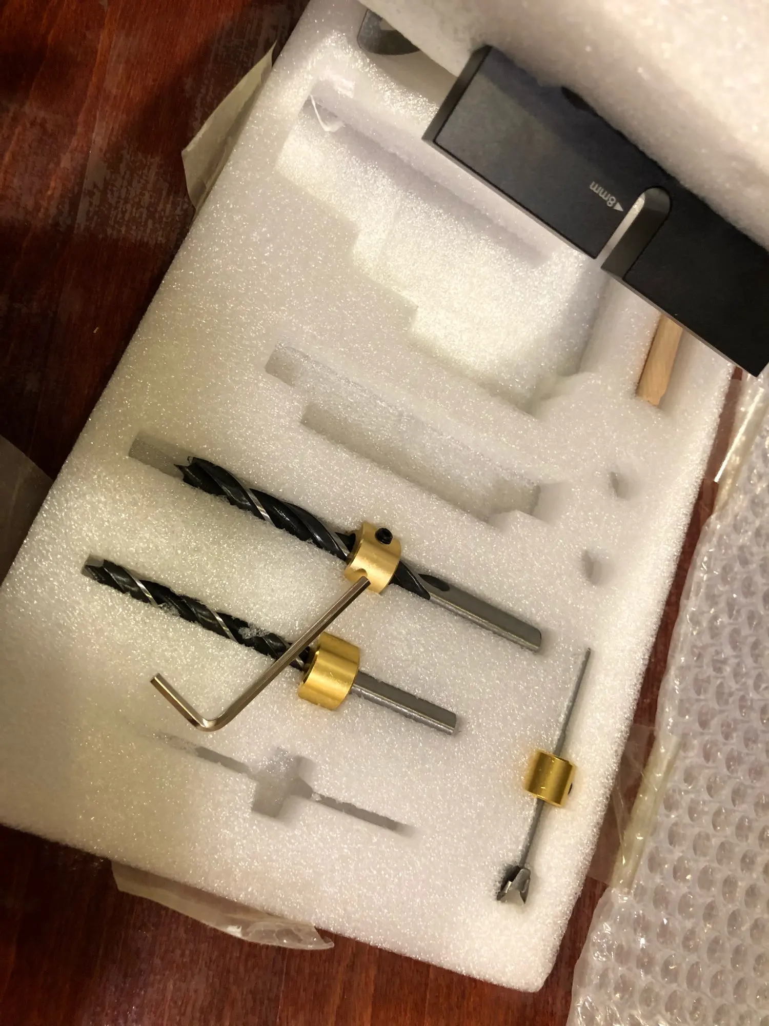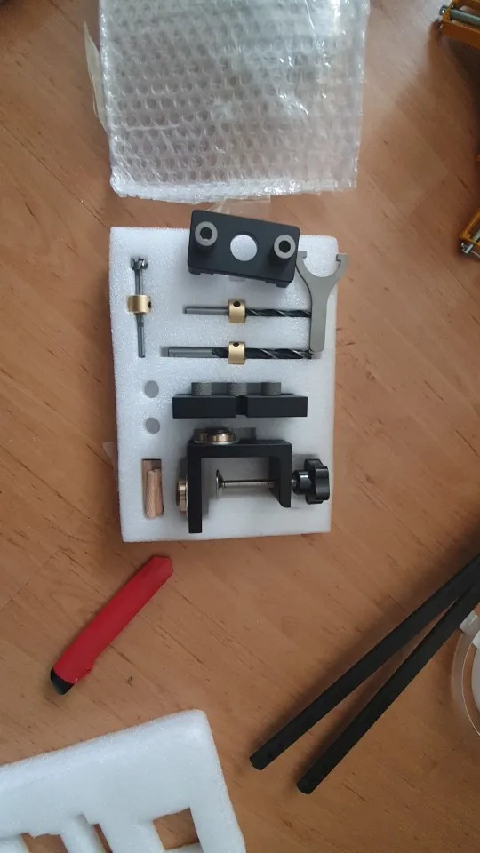 Комплект пришёл полный, упакован великолепно, но 1) ключ для ограничителей не подходит, размером больше, чем нужно. 2) зазор между корпусом и подвижными частями корпуса с втулками 0,7-1мм из-за этого четко выставить и закрепить/затянуть невозможно. Свёрла острые, корпус хорошо отфрезерован, разметка на корпусе хорошо видна, для хобби сойдёт, для профессионалов я бы не посоветовал