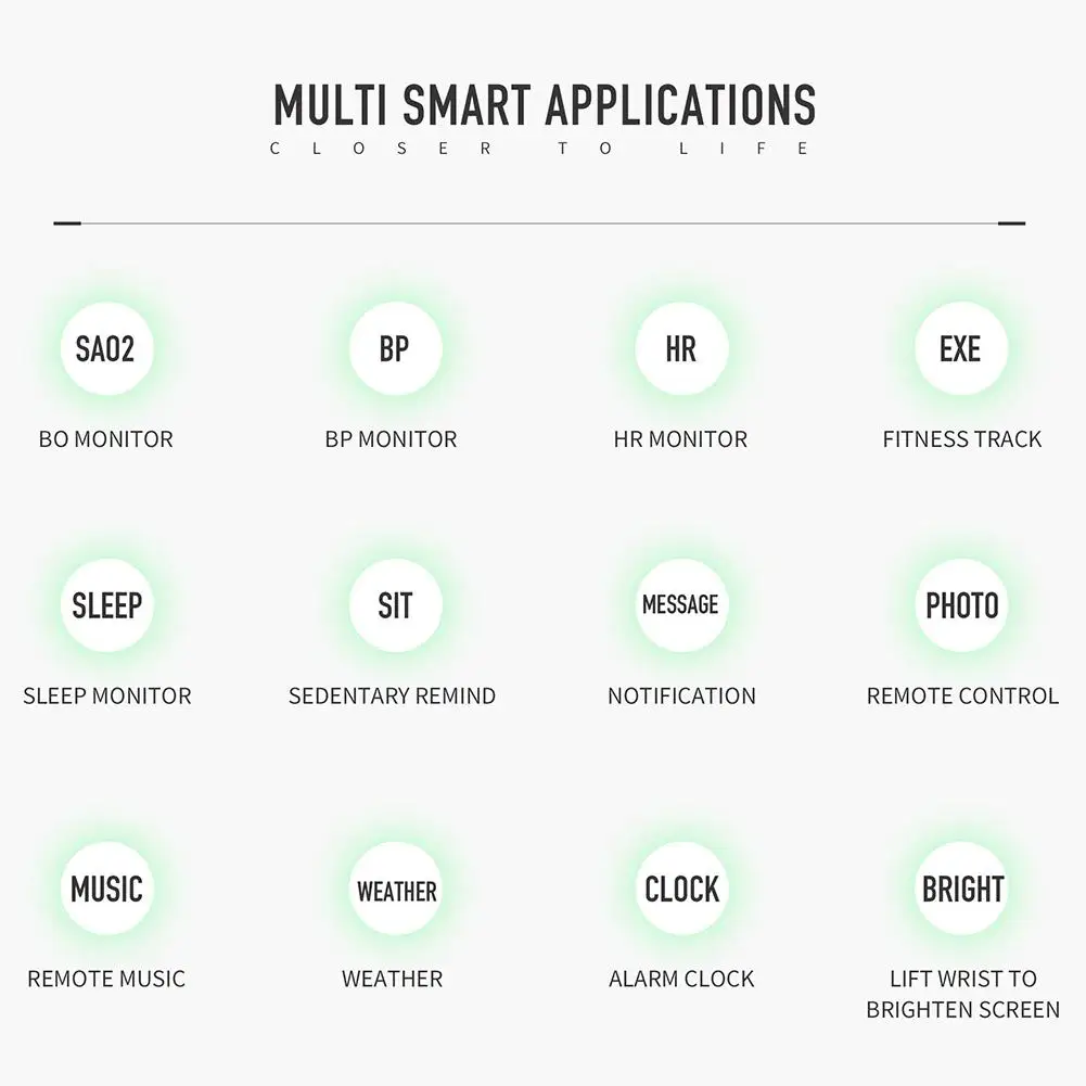 Особенности: 1. Сверхпроводящие материалы электрода порошковой металлургии, скрининг 32 заболеваний электрокардиограммы. 2. Водонепроницаемый со стандартным дизайном IP67 с тройной защитой машина, расширенный электрод сенсорный 2-в-1 технологии. 3. Интеллектуальное бесшумное вибрационное напоминание, удобная зарядка через usb-разъем. 4. Кровяное давление и Монитор кислорода в крови, напоминание о сидячем положении, несколько спортивных режимов. 5. 24 часа пульсометр: зеленый оптический датчик, анализ кровотока под кожей и неправильный пульс в режиме реального времени, Избегайте чрезмерного пульса, вызванного неправильными упражнениями. 6. Монитор сна: введите в o мониторинг для интерфейса сна и нажмите кнопку Пуск, а затем положите на руку, чтобы спать, шагомер будет контролировать качество сна пользователя через амплитуду колебания и продолжительность сна. 7. SMS: push-уведомления по Bluetooth. Оставьте свой телефон в кармане и просмотрите уведомления на запястье. 8. Другие функции: Удаленная камера, управление музыкой, напоминание о потере, будильник, напоминание о задаче, напоминание о деятельности, напоминание о сидячем положении и т. д. Характеристики: Модель: KW19 Версия Bluetooth: Bluetooth V4.0 Операционная система: Android 5,1/IOS 9,0 или iPhone 5s выше. Водонепроницаемость: IP67 (нет) Сенсорный экран Экран дисплея: 1,3 дюймов TFT круглый HD Сенсорный экран: одноступенчатый OGS емкостный экран Разрешение: 240*240 пикселей ЦП: HS6620D Память: 128 МБ RAM 256 Мб ROM Датчик s: датчик сердечного ритма Аккумулятор: 140 мАч высоковольтный полимерный аккумулятор Время зарядки: около 2-3 часов Время работы в режиме ожидания: около 8 дней Нормальное использование: около 3 дней Зарядка: док-станция для зарядного устройства USB G-сенсор: Поддержка Микрофон: нет С напоминанием вибрацией: Да Камера: нет Обновление OTA: Да Загрузка приложения/APK: Сканируйте qr-код на ваших часах через браузер телефона для загрузки и установки приложения. Обработка: пластиковый чехол + сменный ремешок из ТПУ Поддержка языков: китайский, английский, португальский, японский, французский, испанский, русский и т. Д. (вышеуказанные 7 языков могут быть отображены в приложении после синхронизации с телефоном). Размеры циферблата: около 50x45x9,6 мм/1,97x1,77 x 0.38in Вес нетто: около 38 г Вес посылка: около 123 г Советы: 1. Пожалуйста, зарядите Смарт-часы перед использованием. 2. Пожалуйста, проверьте руководство пользователя, чтобы узнать, как использовать часы. 3. Эти часы водонепроницаемы IP67. Не поддерживайте Купание или плавание, пожалуйста, держитесь подальше от воды! Что в коробке? Умные часы KW19-1 шт. 1 зарядная док-станция USB 1 x Руководство пользователя