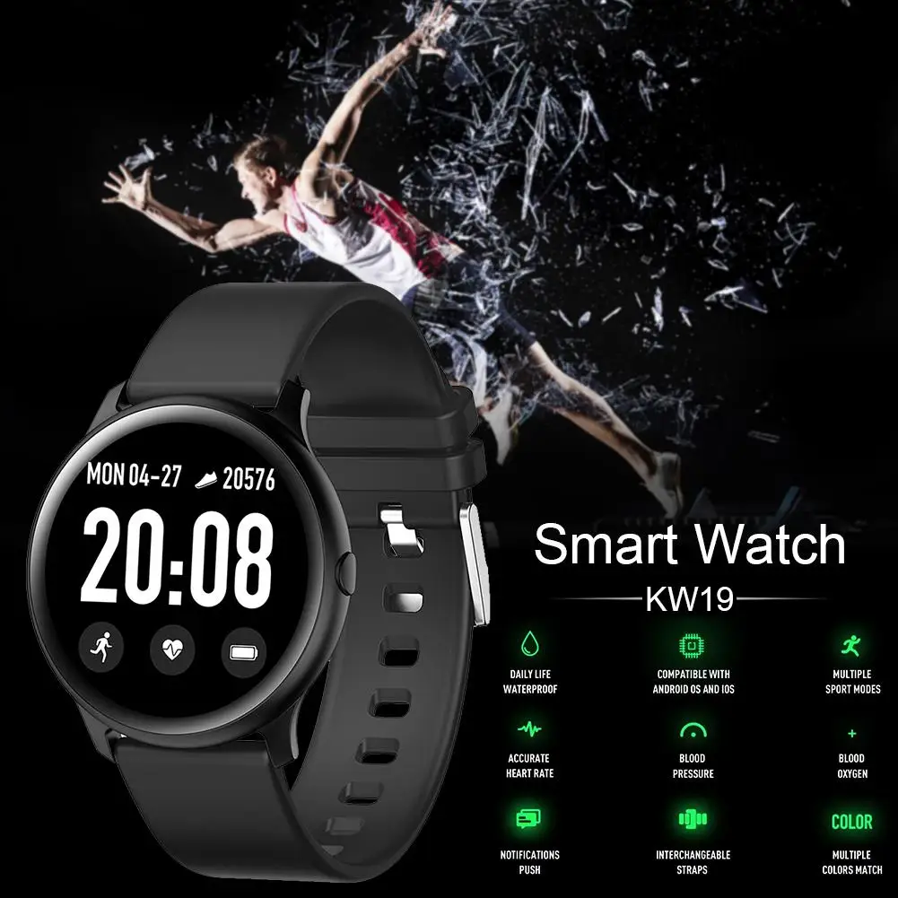 KW19 Смарт-часы для мужчин и женщин, пульсометр, сообщения, напоминания, фитнес-трекер, спортивные Смарт-часы для IOS, Android, IP67, водонепроницаемые