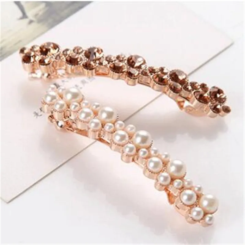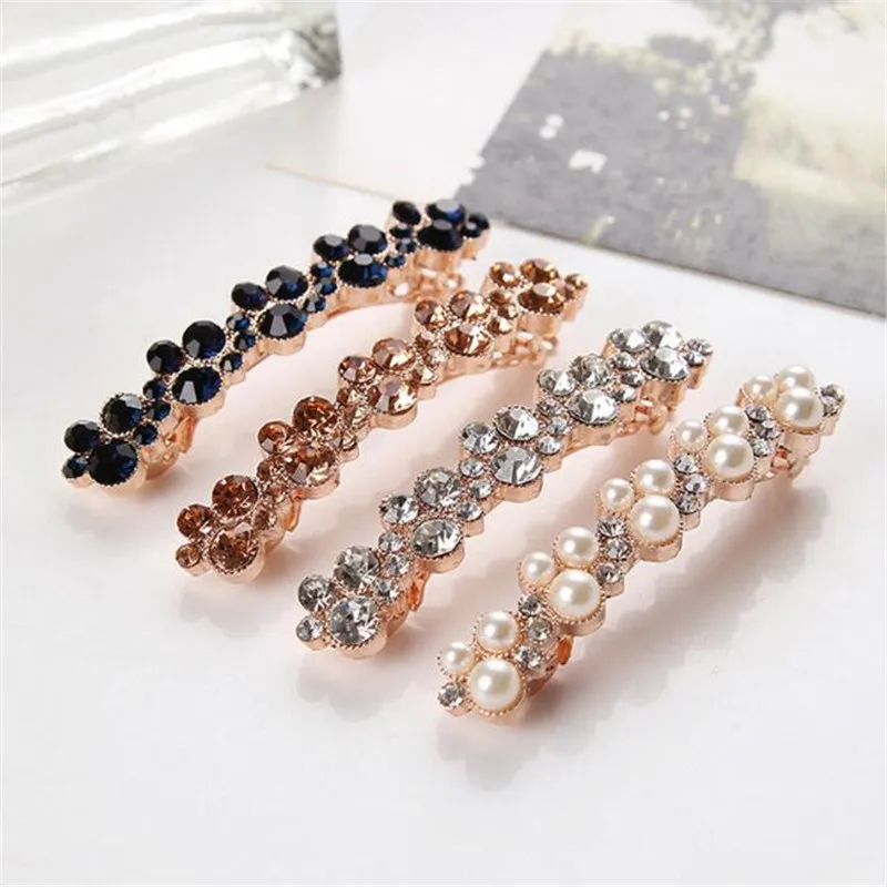 Заколка для волос женская, с кристаллами и жемчугом, в Корейском стиле