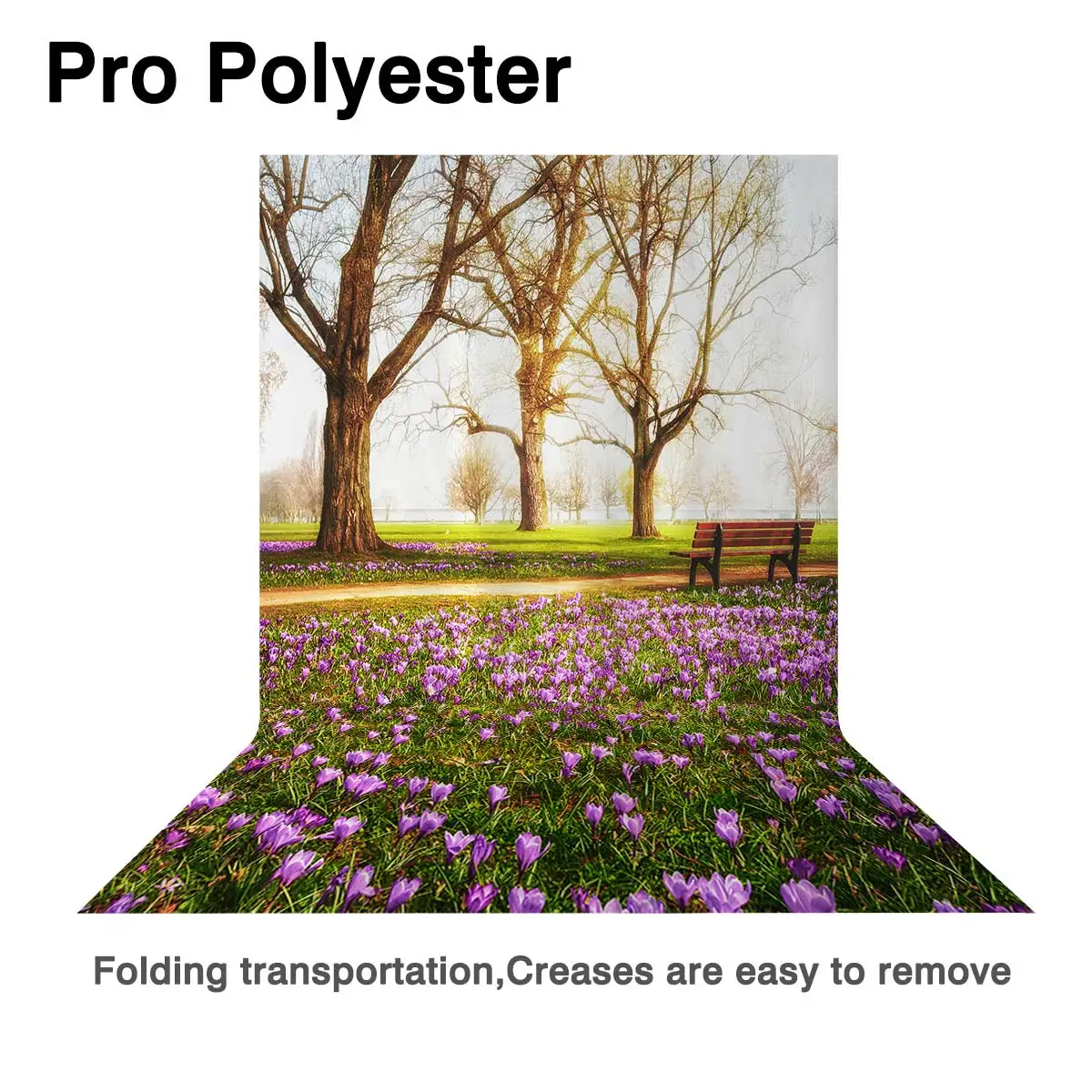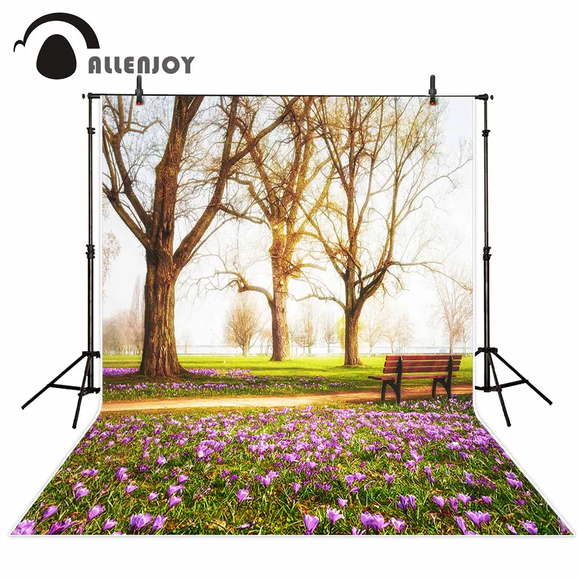 Фон для фотосъемки Allenjoy с изображением весеннего парка природы скамейки с цветами и деревьями детский фон