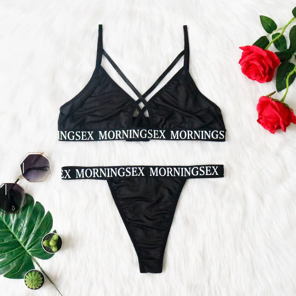 Сексуальное женское нижнее белье с ремешками наборы бюстгальтер + трусы, бандажный бюстгальтер с надписью, бюстгальтер с ремешками, трусики, комплект бикини большого размера