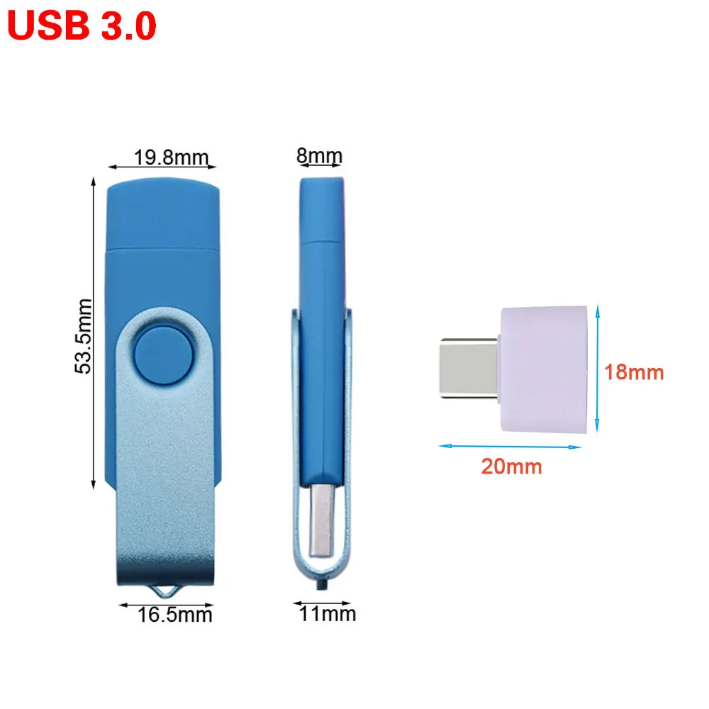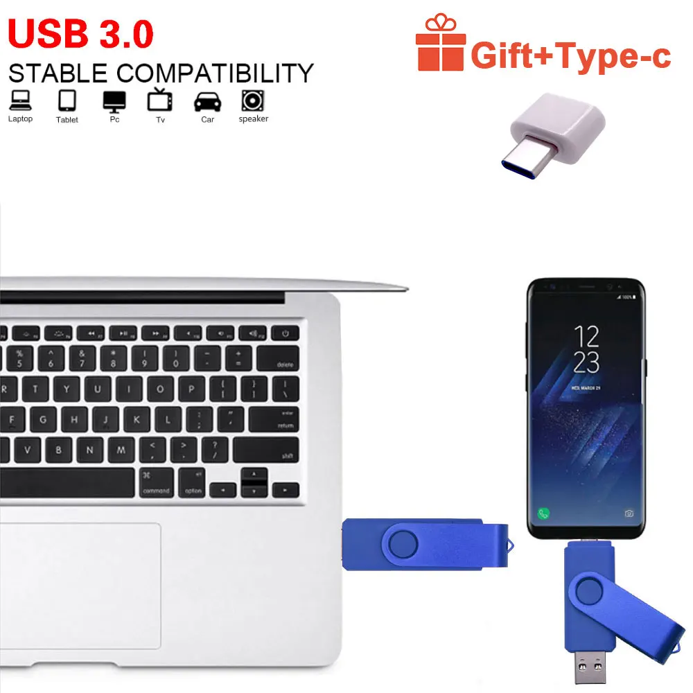 Флеш-накопитель USB TYPE-C, OTG флешка на 128 ГБ, 64 ГБ, 32 ГБ, 16 ГБ, USB флешка 3 в 1, высокая скорость, логотип на заказ
