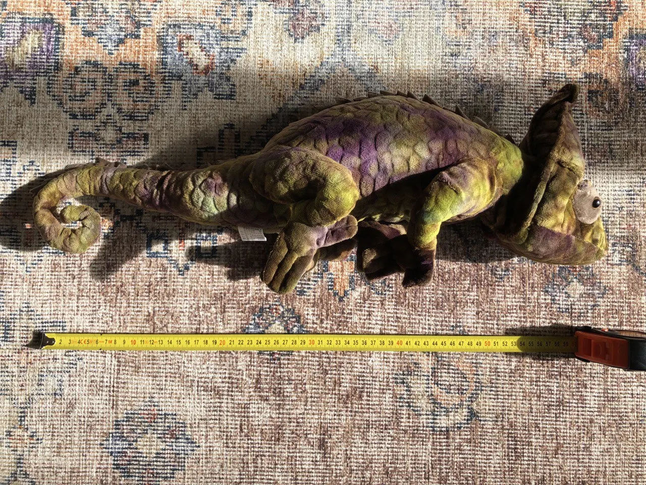Описание и фотографии обманчивы, хамелеон значительно меньше. Указано, что длина 70 см, на самом деле меньше 60-ти, а на фотографиях с девушкой вообще другая игрушка, раза в два больше. Сам хамелеон классный, просто маленький. Доставка в Москву заняла 12 дней, трекинг через Почту России.