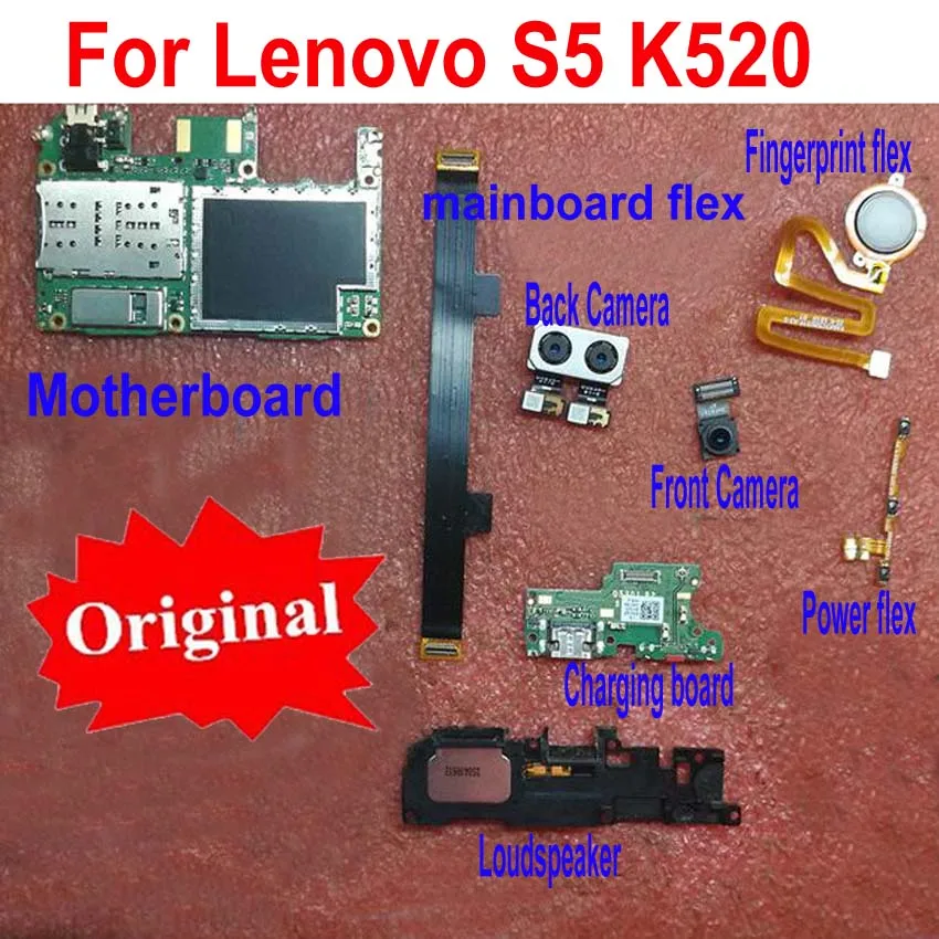 Оригинальная материнская плата, фронтальная задняя камера, мощность, объем, гибкий кабель для Lenovo S5 K520, плата для зарядки, материнская плата, гибкий громкоговоритель, отпечаток пальца, гибкий кабель