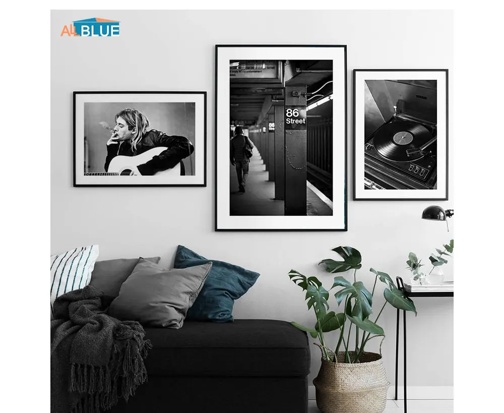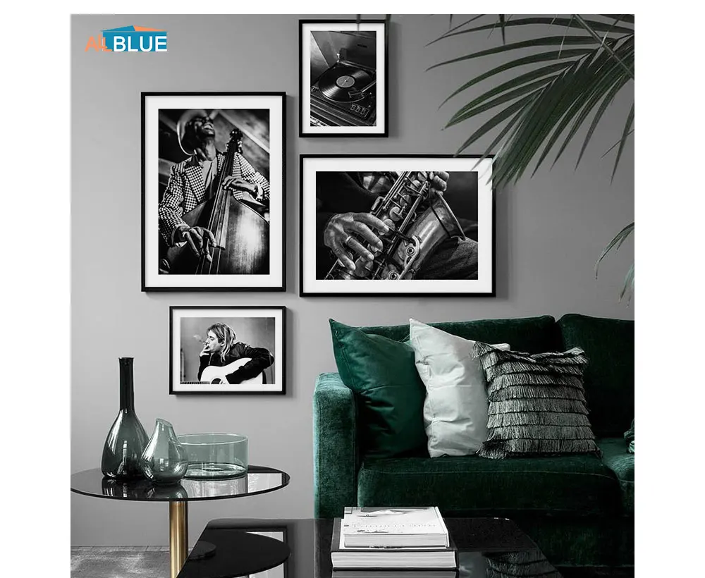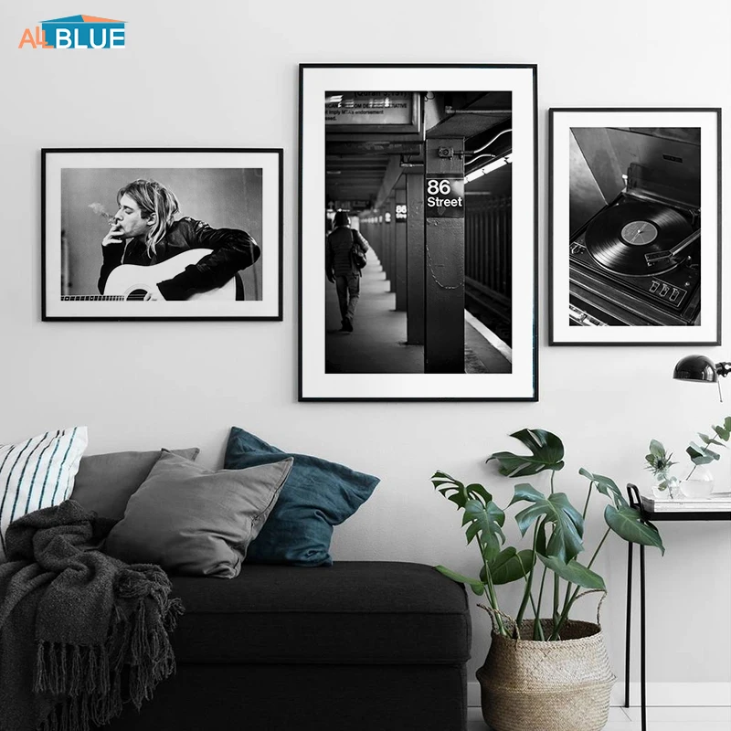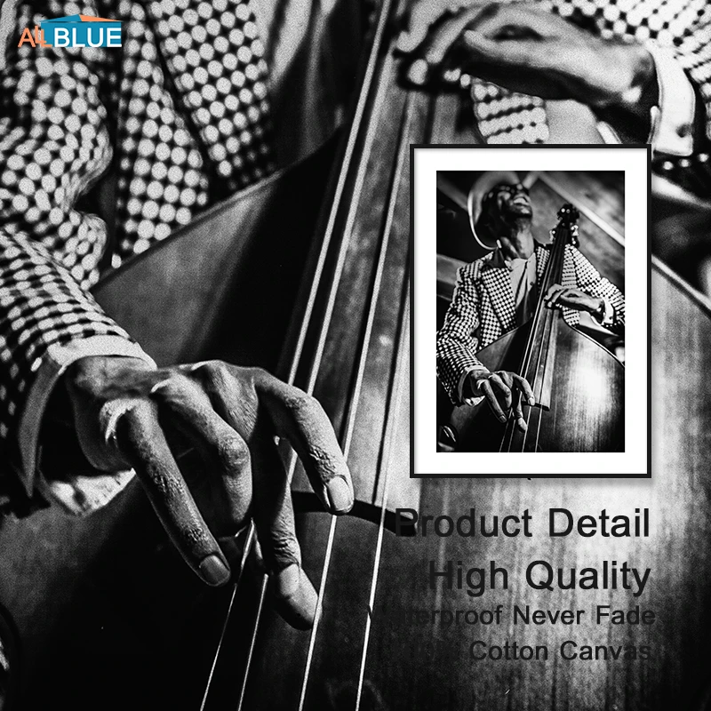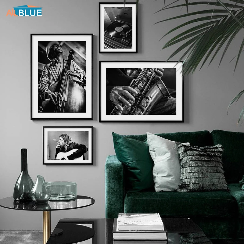 Постер на стену в скандинавском стиле, принт полоса, гитара, джаз, портрет, декоративная картина на холсте, черная, белая Настенная картина для гостиной