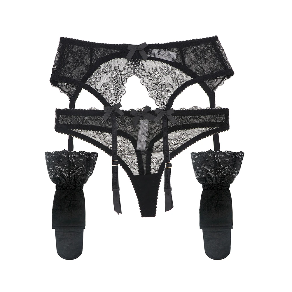 Комплект из 3 подвязок, стрингов и чулок Varsbaby, прозрачное кружевное нижнее белье черногобелогорозового цветов, размеры S, M, L, XL