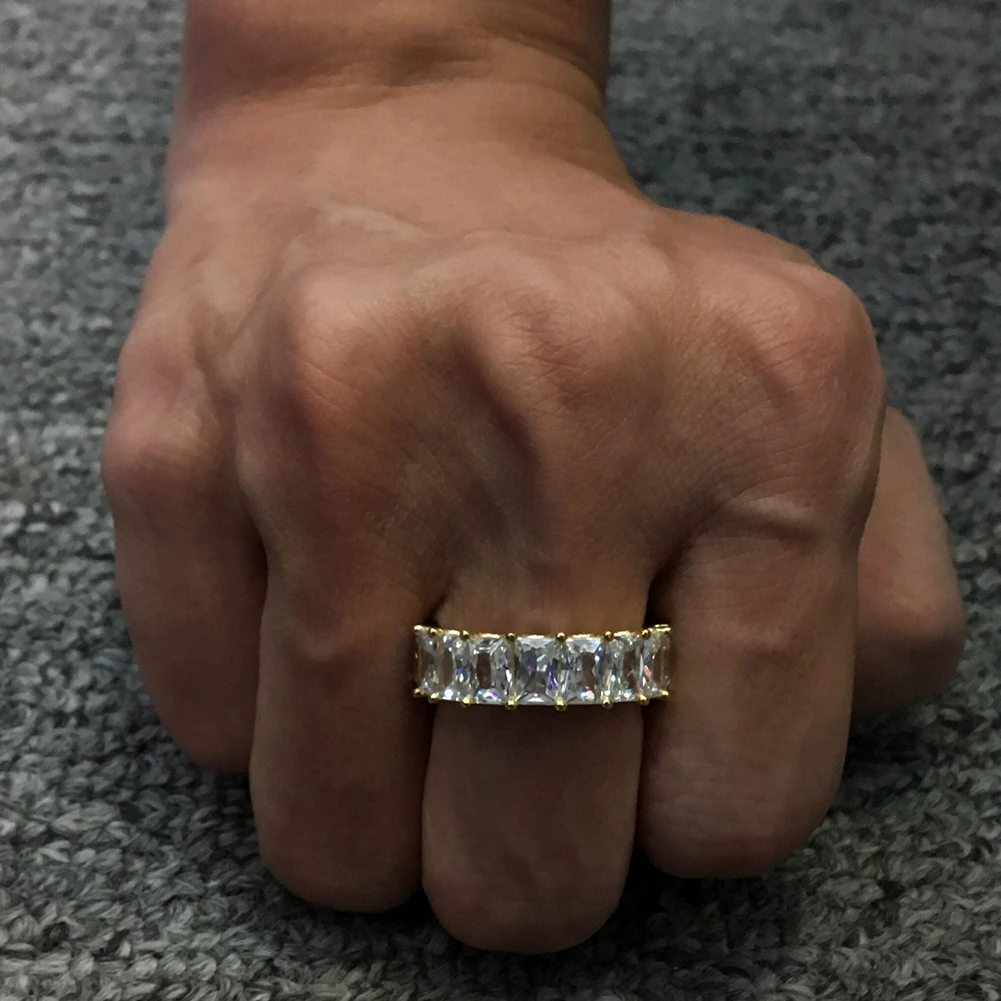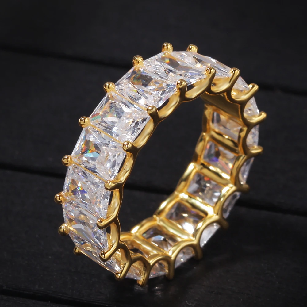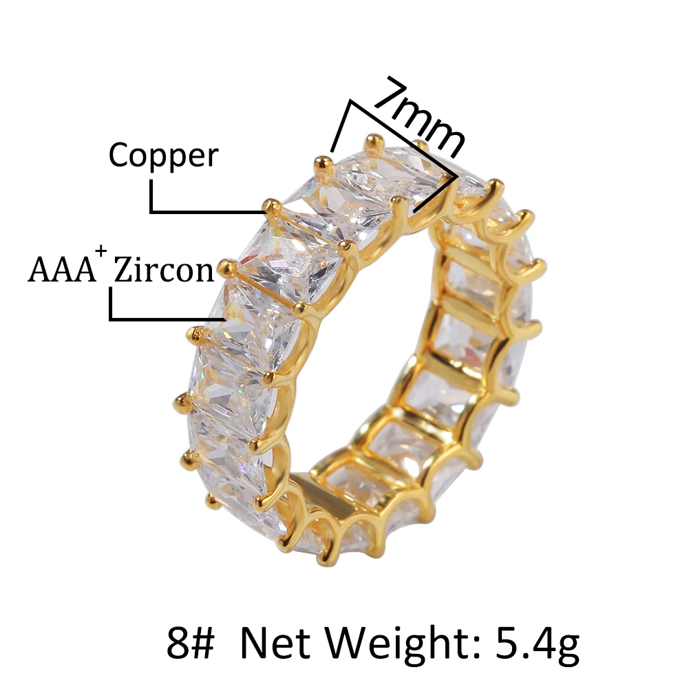 Сверкающее кольцо KING Hiphop с багетом, золотоебелое золото, 7 мм, квадратное кубическое циркониевое кольцо, 1 ряд, модные вечерние ювелирные изделия для мужчин и женщин