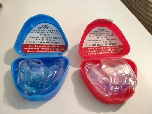 опиралась при заказе на отзывы. трейнер отличного качества, на фото слева. он немного выше нашего из аптеки и это даже лучше при ночном ношении,и немного короче. но! наш трейнер нам пришлось подрезать (укоротить)под нашу челюсть. ребенок примерил и сказал все ок, как надо.