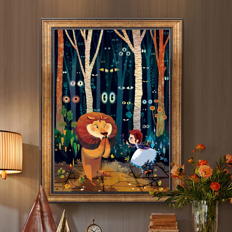 Вышивка крестиком, полный набор для вышивки, картина Мир животных, Король Лев и девушка